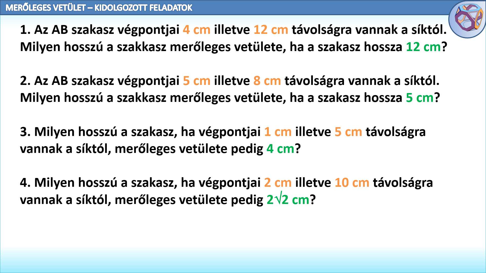 Ebben a leckében megismerkedünk a merőleges vetület fogalmával.