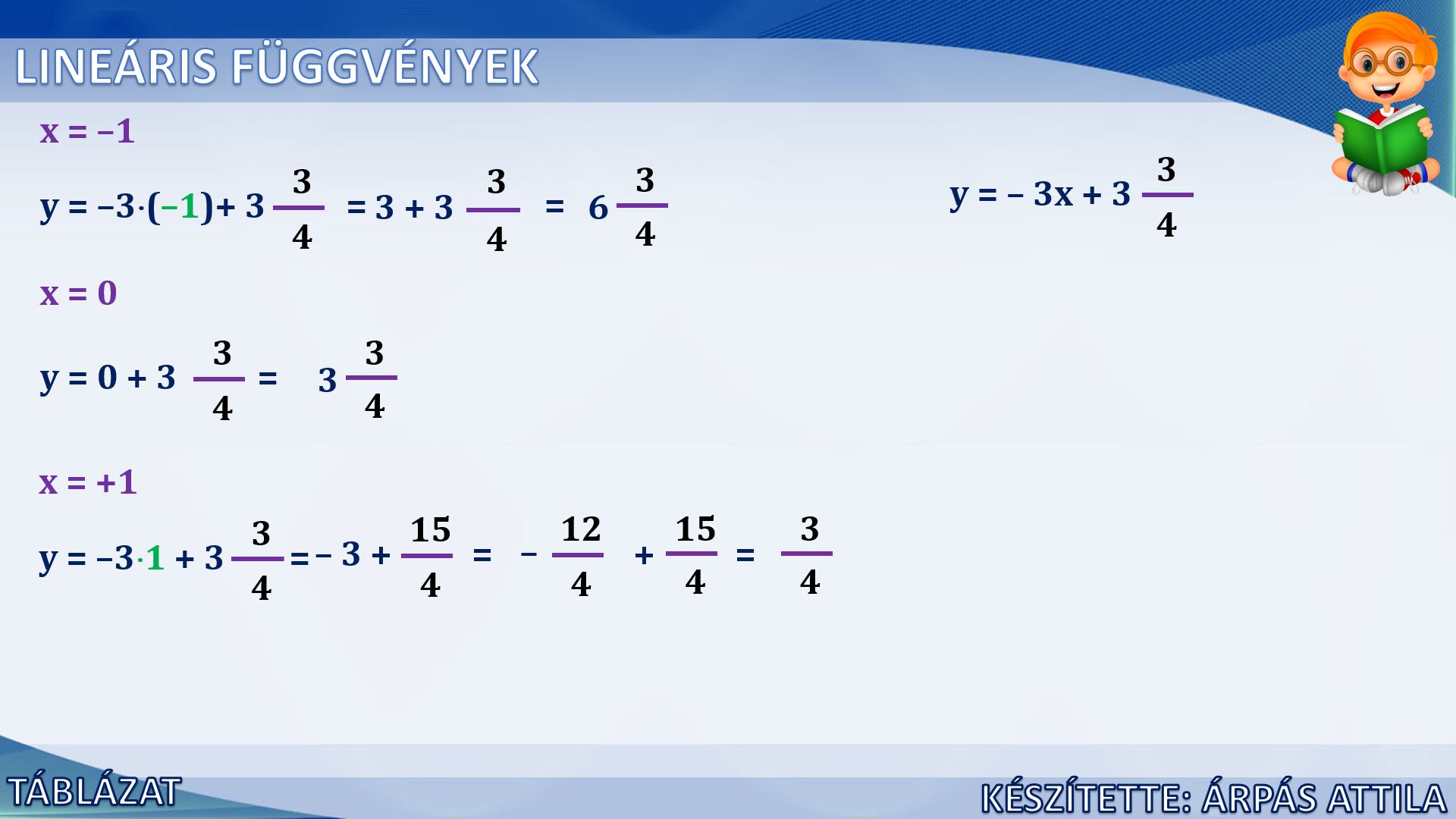LINEÁRIS FÜGGVÉNYEK KIVIZSGÁLÁSA (3. FELADAT)