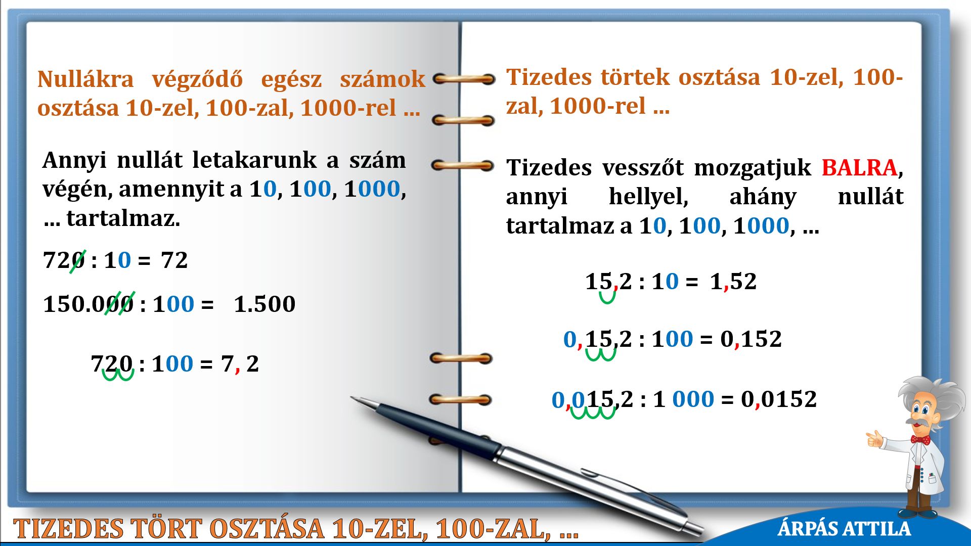 Ebben a leckében megismerkedünk azokkal a szabályokkal, melyek segítségével természetes számokat, illetve racionális számokat tízes egységekkel tudunk osztani.
