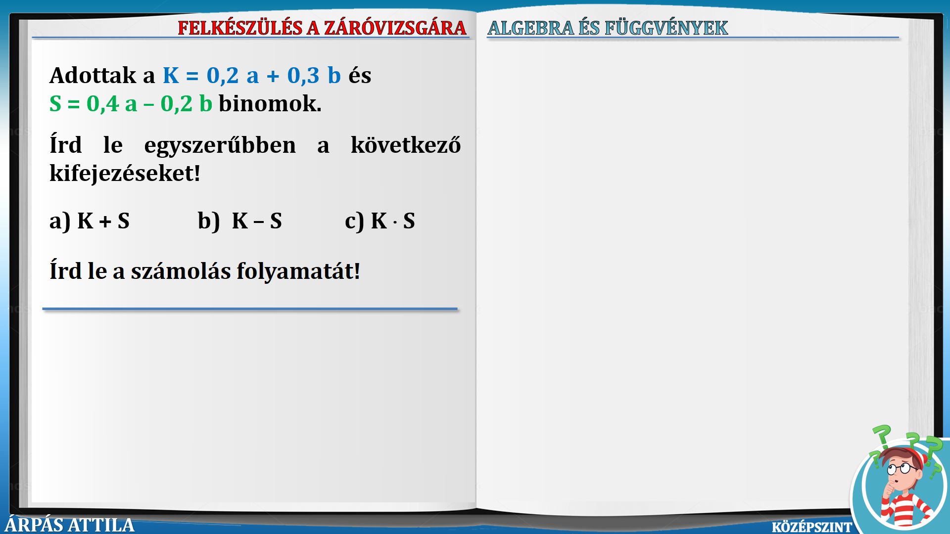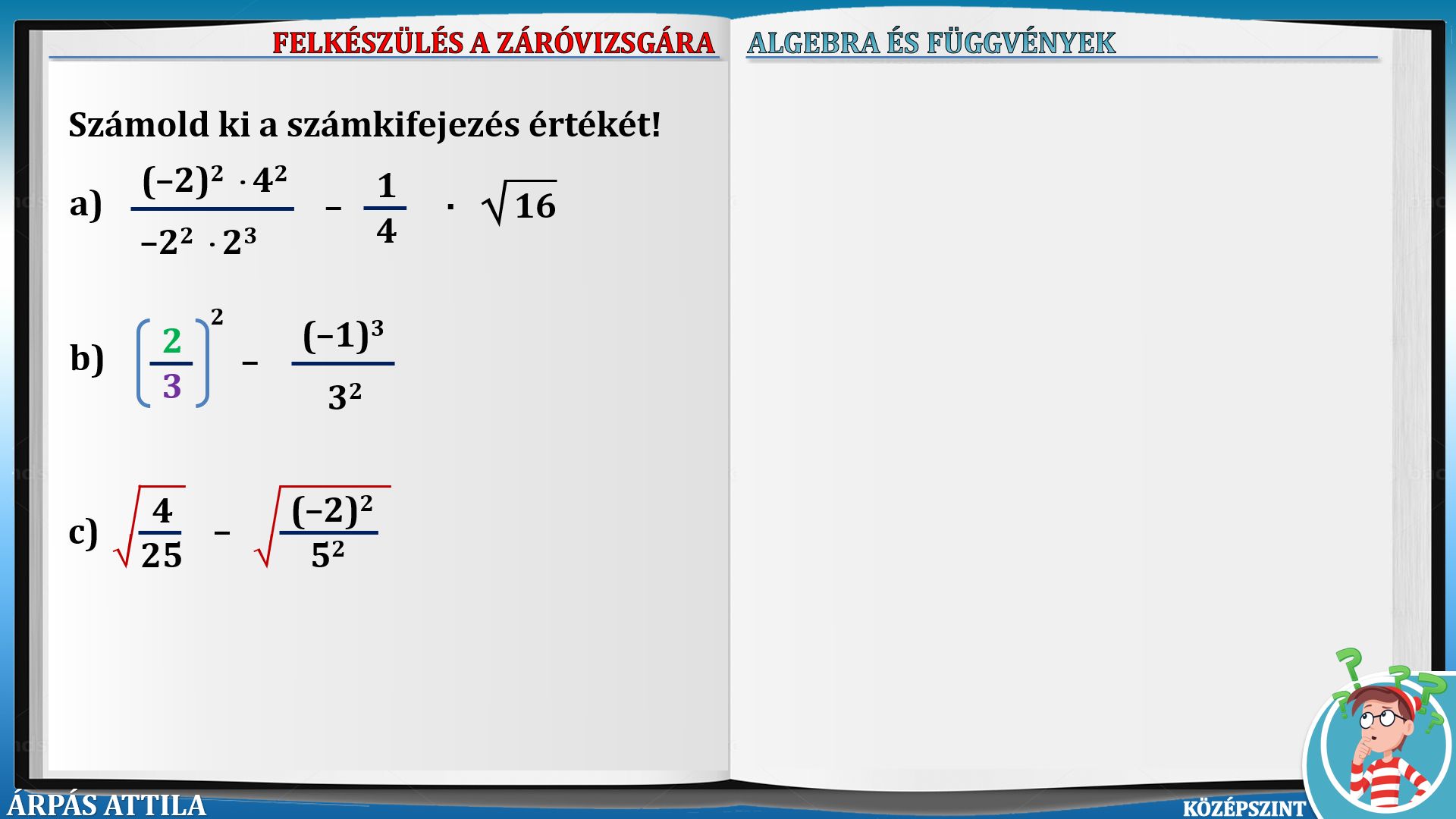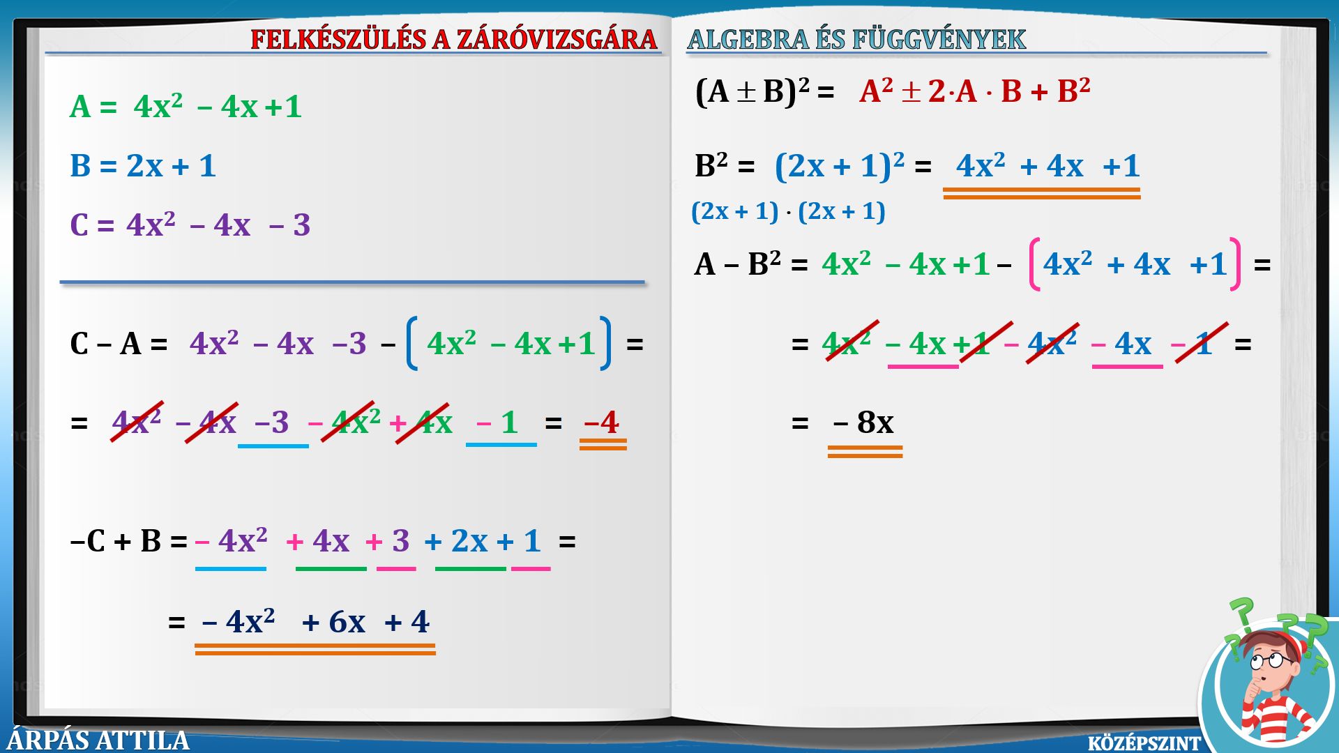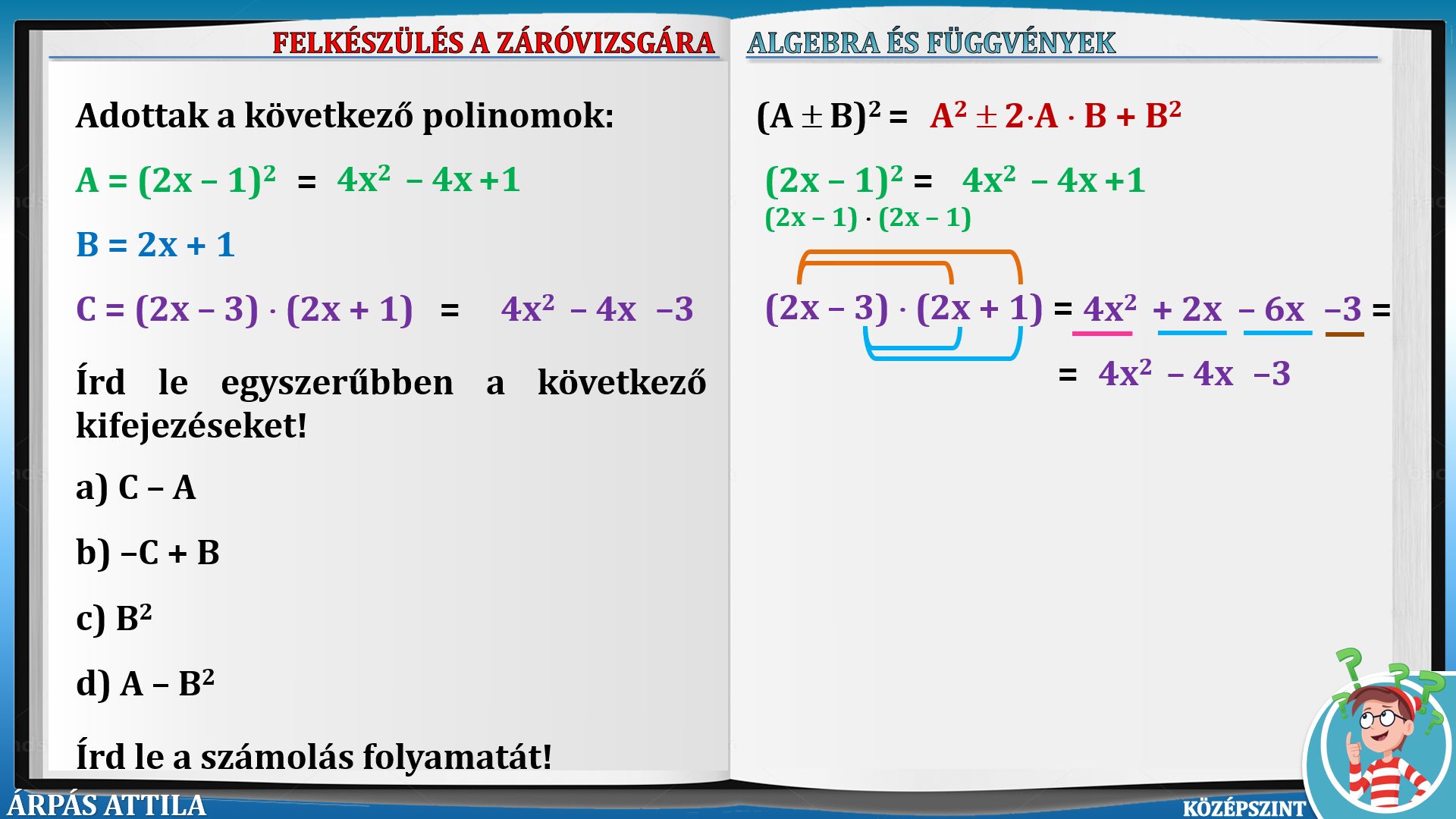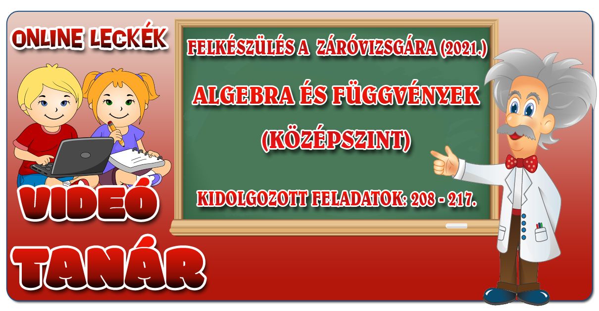 ALGEBRA ÉS FÜGGVÉNYEK (KÖZÉPSZINT, 198-236.) TOVÁBBI LECKÉK ALGEBRA ÉS FÜGGVÉNYEK (2021 - KÖZÉPSZINT)-FELADATOK: 198-207. ALGEBRA ÉS FÜGGVÉNYEK (2021 - KÖZÉPSZINT)-FELADATOK: 208-217. ALGEBRA ÉS FÜGGVÉNYEK (2021 - KÖZÉPSZINT)-FELADATOK: 218-227. ALGEBRA ÉS FÜGGVÉNYEK (2021 - KÖZÉPSZINT)-FELADATOK: 228-236. |
