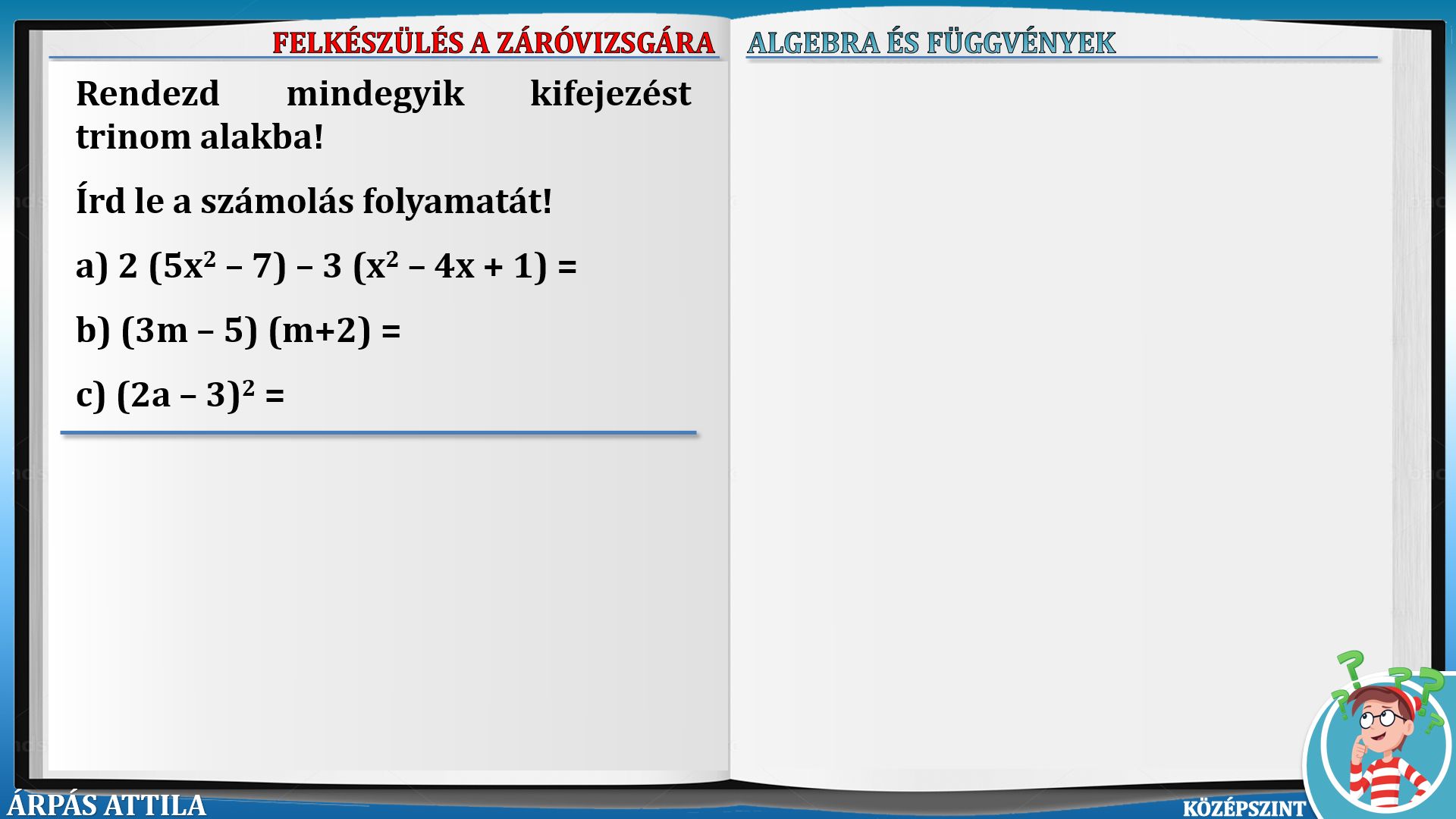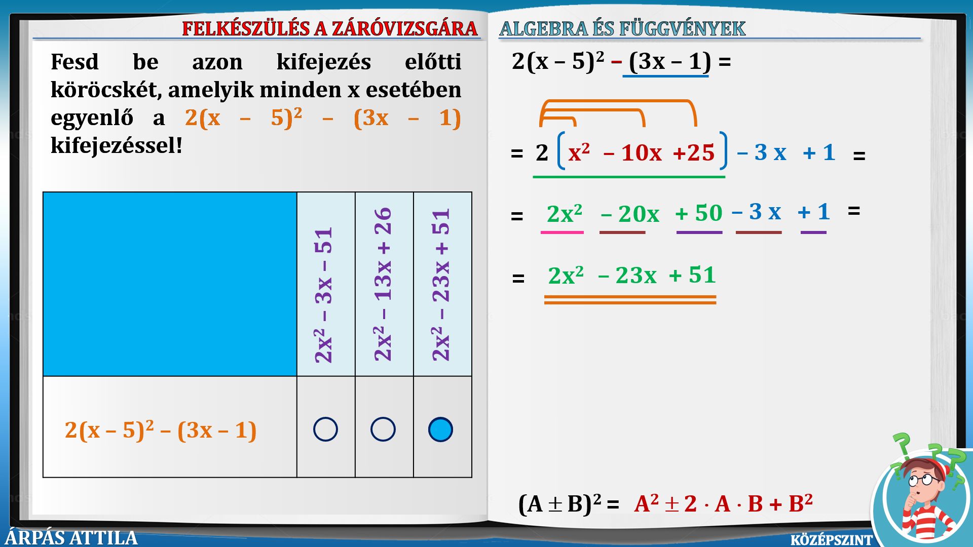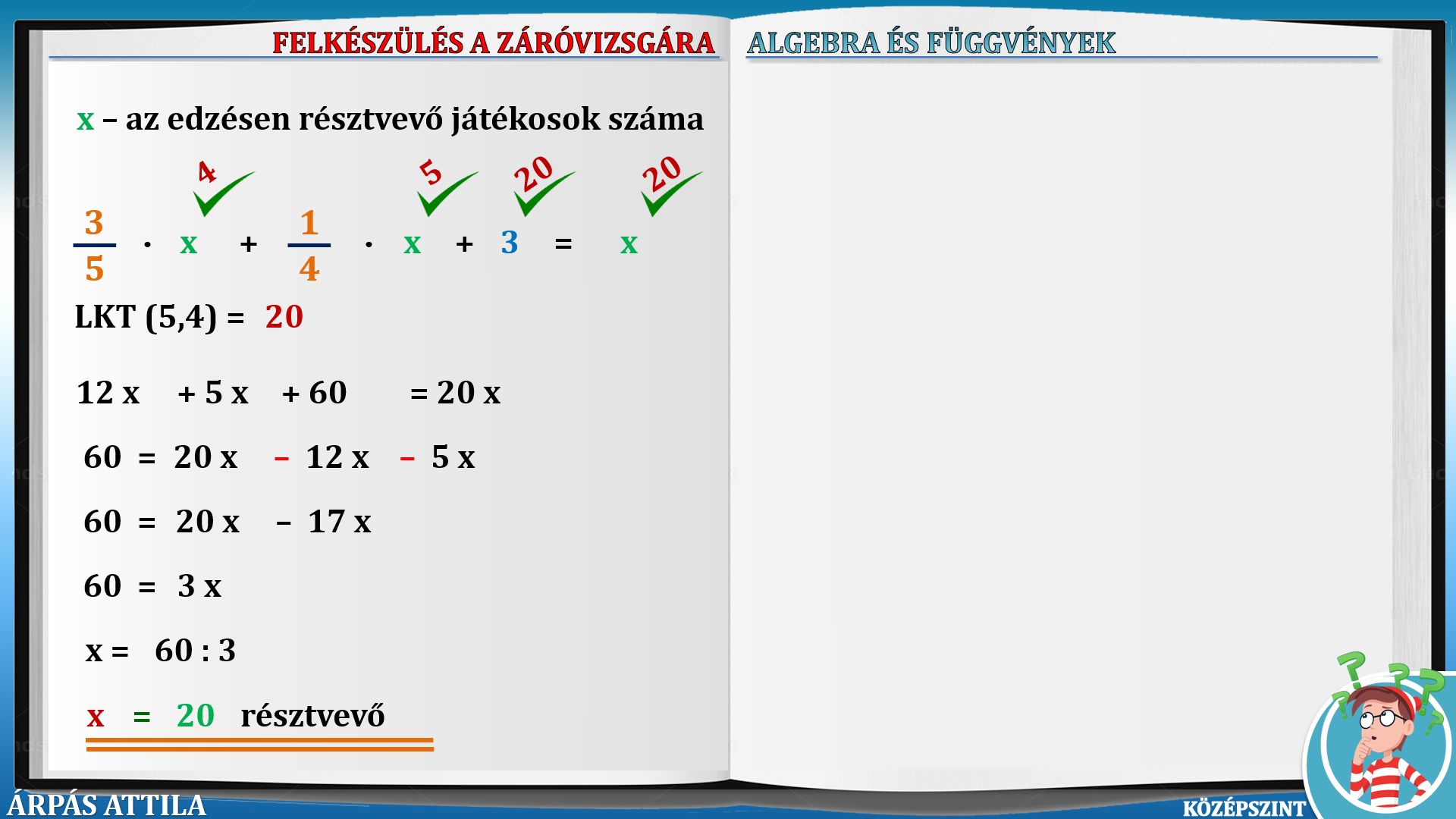 ALGEBRA ÉS FÜGGVÉNYEK (KÖZÉPSZINT, 198-236.) TOVÁBBI LECKÉK ALGEBRA ÉS FÜGGVÉNYEK (2021 - KÖZÉPSZINT)-FELADATOK: 198-207. ALGEBRA ÉS FÜGGVÉNYEK (2021 - KÖZÉPSZINT)-FELADATOK: 208-217. ALGEBRA ÉS FÜGGVÉNYEK (2021 - KÖZÉPSZINT)-FELADATOK: 218-227. ALGEBRA ÉS FÜGGVÉNYEK (2021 - KÖZÉPSZINT)-FELADATOK: 228-236. |