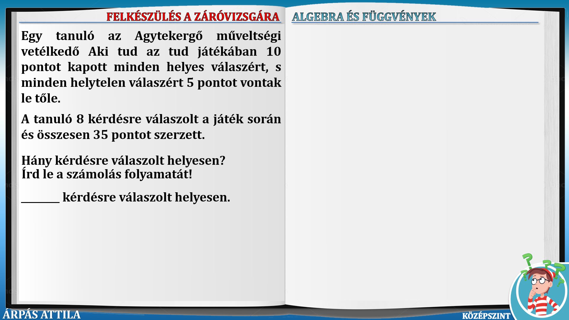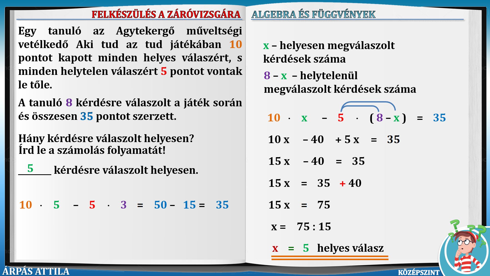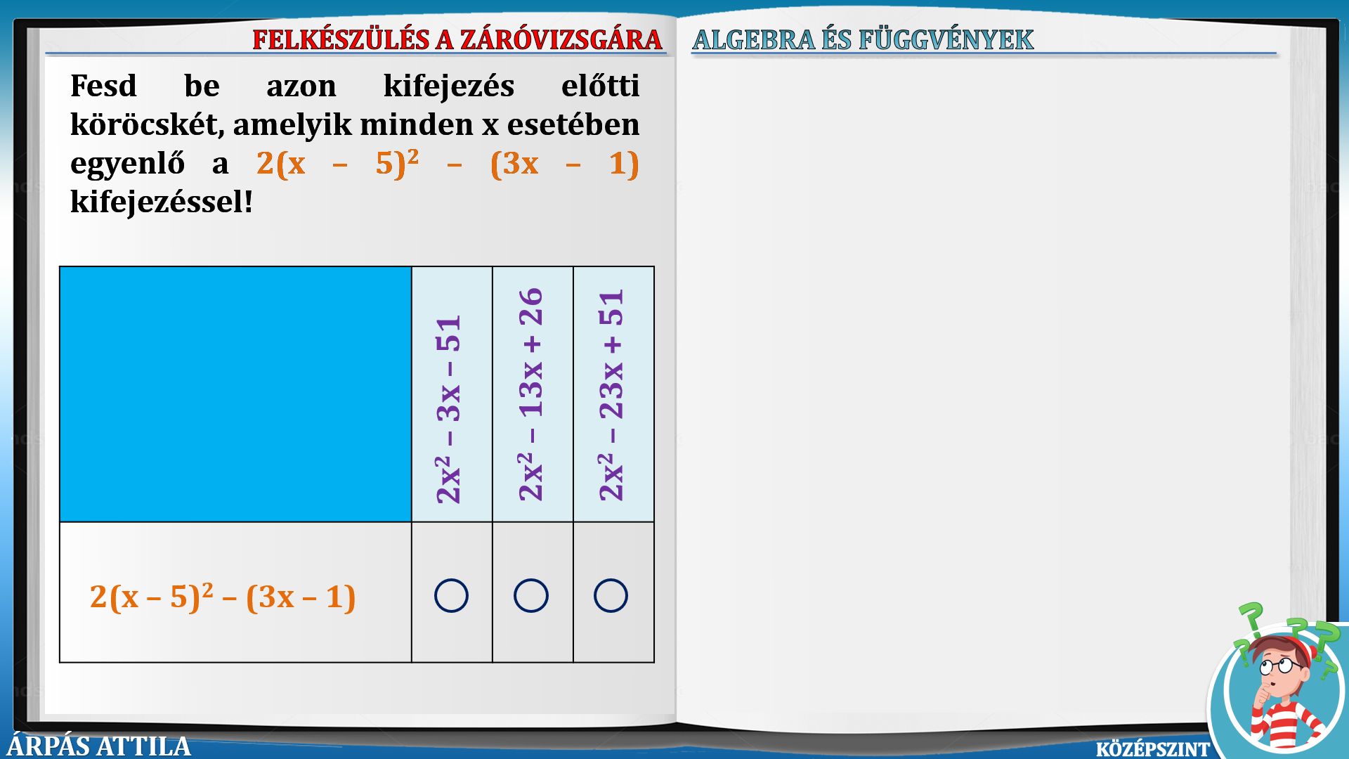 ALGEBRA ÉS FÜGGVÉNYEK (KÖZÉPSZINT, 198-236.) TOVÁBBI LECKÉK ALGEBRA ÉS FÜGGVÉNYEK (2021 - KÖZÉPSZINT)-FELADATOK: 198-207. ALGEBRA ÉS FÜGGVÉNYEK (2021 - KÖZÉPSZINT)-FELADATOK: 208-217. ALGEBRA ÉS FÜGGVÉNYEK (2021 - KÖZÉPSZINT)-FELADATOK: 218-227. ALGEBRA ÉS FÜGGVÉNYEK (2021 - KÖZÉPSZINT)-FELADATOK: 228-236. |