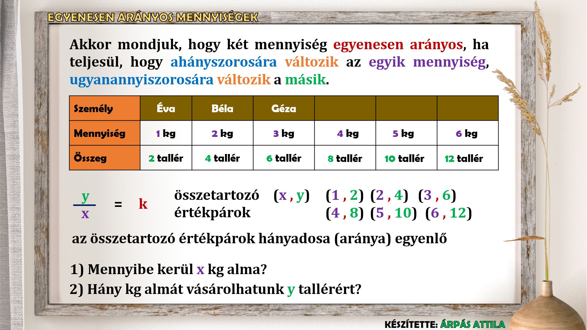 ARÁNYPÁR EGYENESEN ARÁNYOS MENNYISÉGEKNÉL