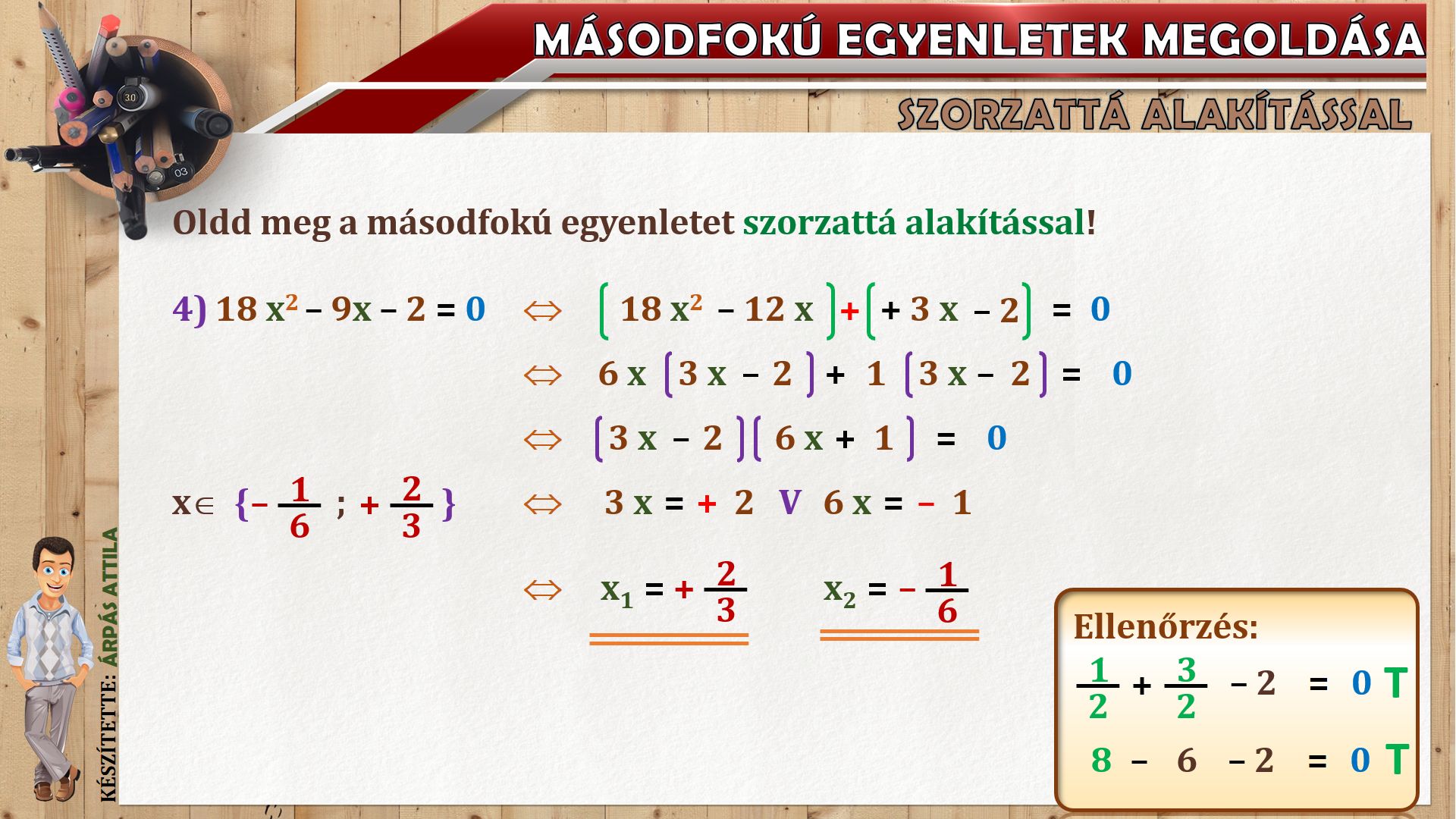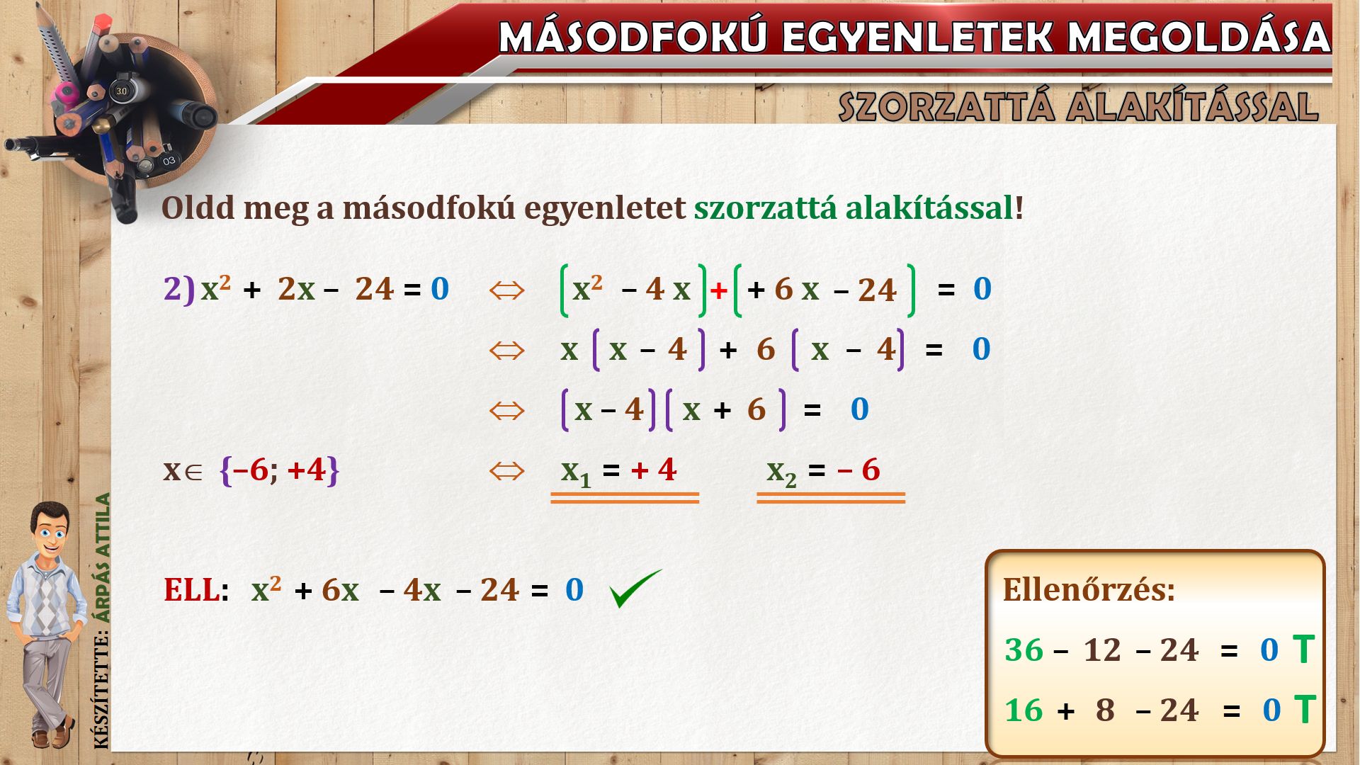 2) MÁSODFOKÚ EGYENLET MEGOLDÁSA SZORZATTÁ ALAKÍTÁSSAL