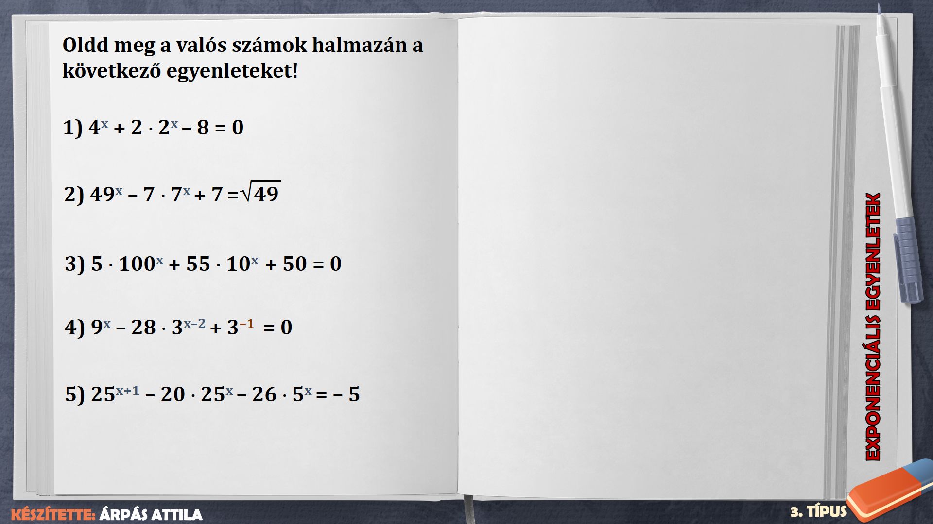 EXPONENCIÁLIS EGYENLETEK – 3. TÍPUS (3. FELADATLAP)