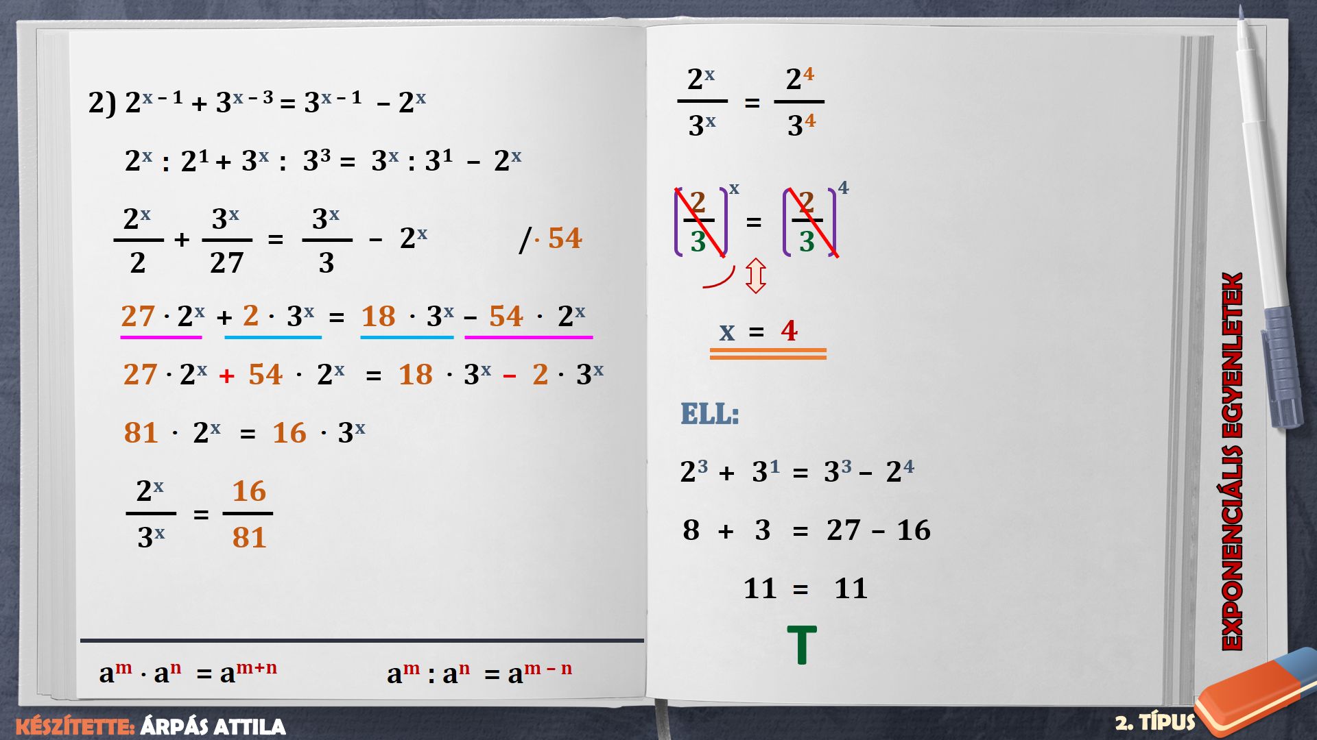 EXPONENCIÁLIS EGYENLETEK – 3. TÍPUS (3. FELADATLAP)