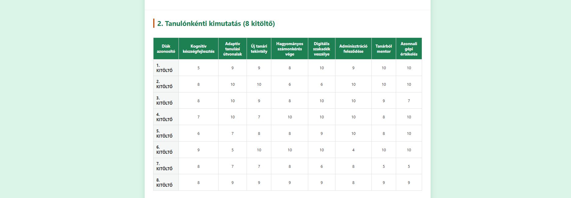 Biztonsági lakat (Lezárás): A tanár a táblázatban egyetlen kattintással lezárhatja a felmérést. Ezután már senki nem tud új választ beküldeni, így az eredmény garantáltan végleges marad.