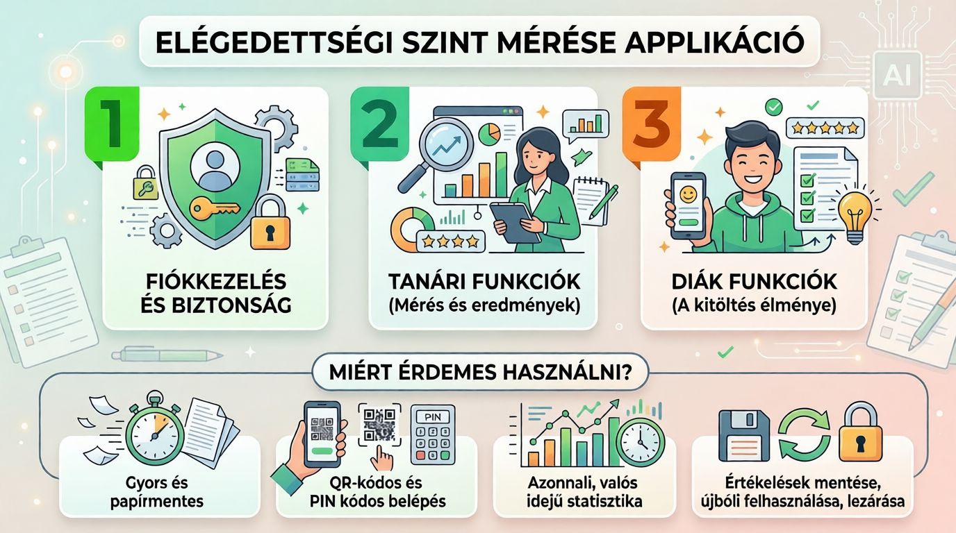 Az elégedettségi szint mérése applikáció egy anonim, játékos értékelő eszköz. Segítségével a diákok egy látványos diagramon adhatnak őszinte, azonnali visszajelzést a tanár által megadott témákban.
