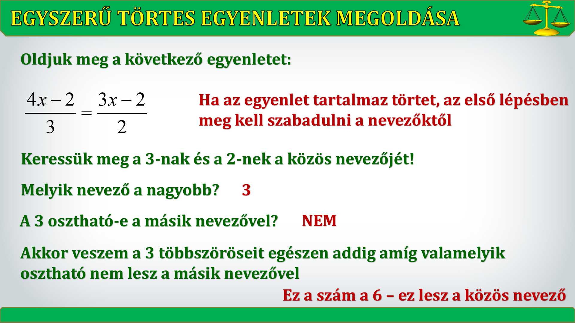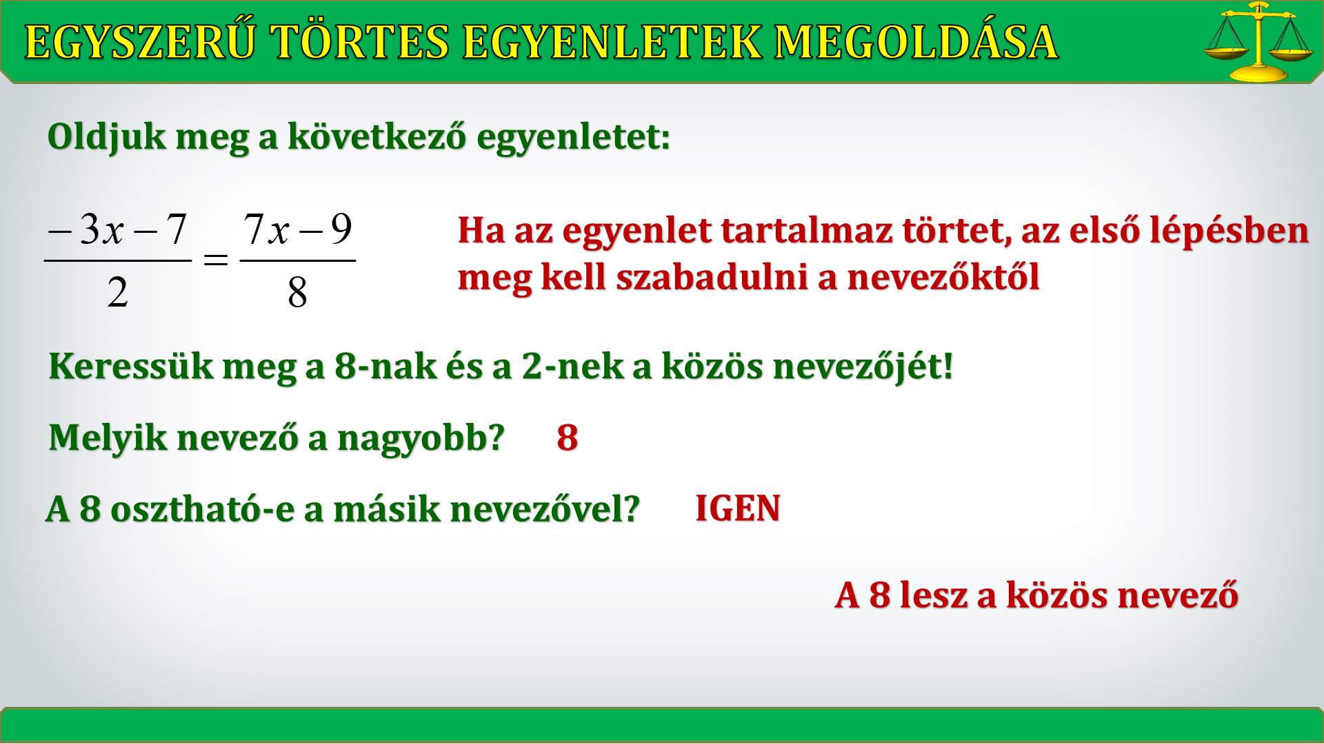 EGYSZERŰ TÖRTES EGYENLETEK MEGOLDÁSA (1. RÉSZ)