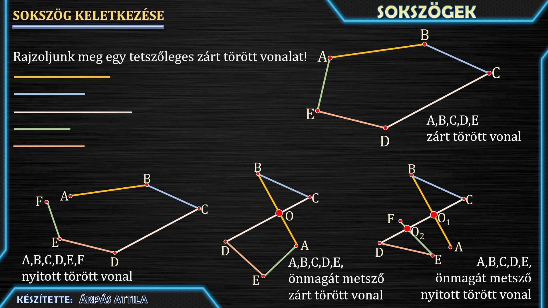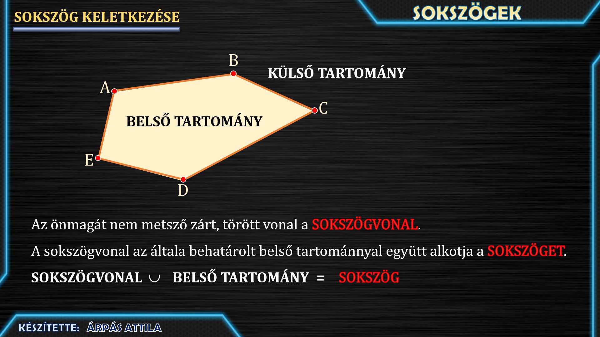 Hogyan keletkezik a sokszög, miből áll (sokszögvonal + belső tartomány).
