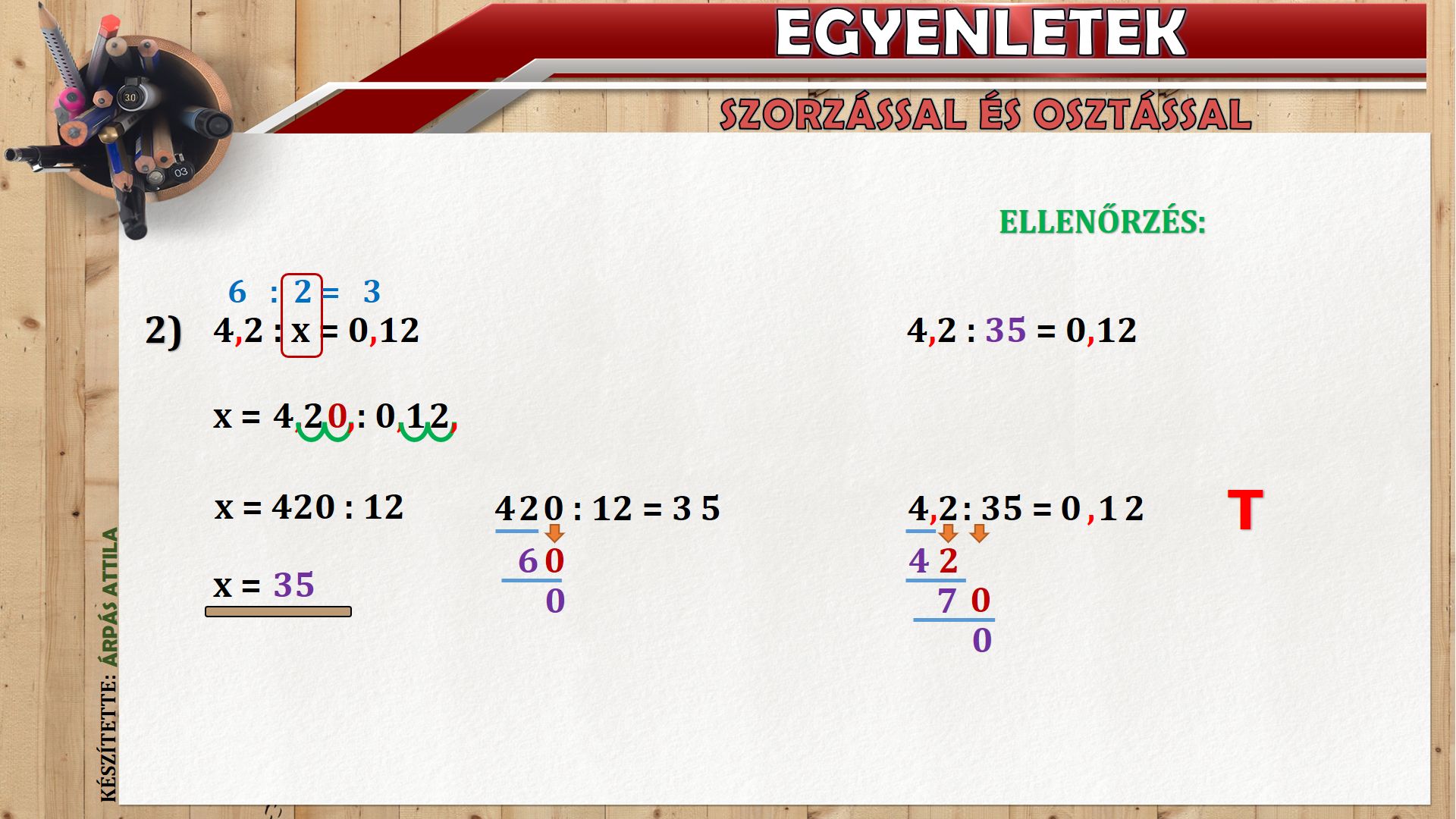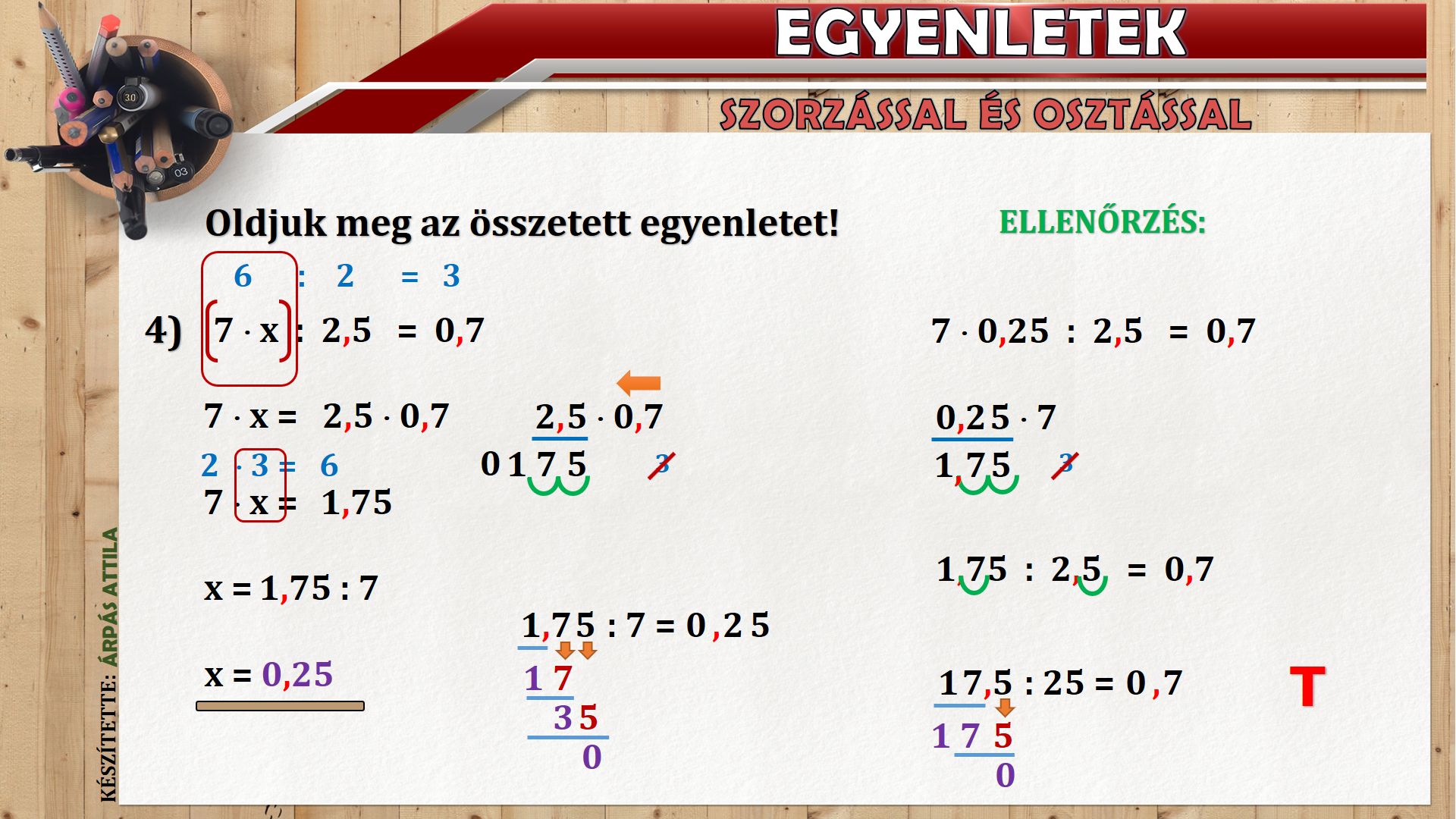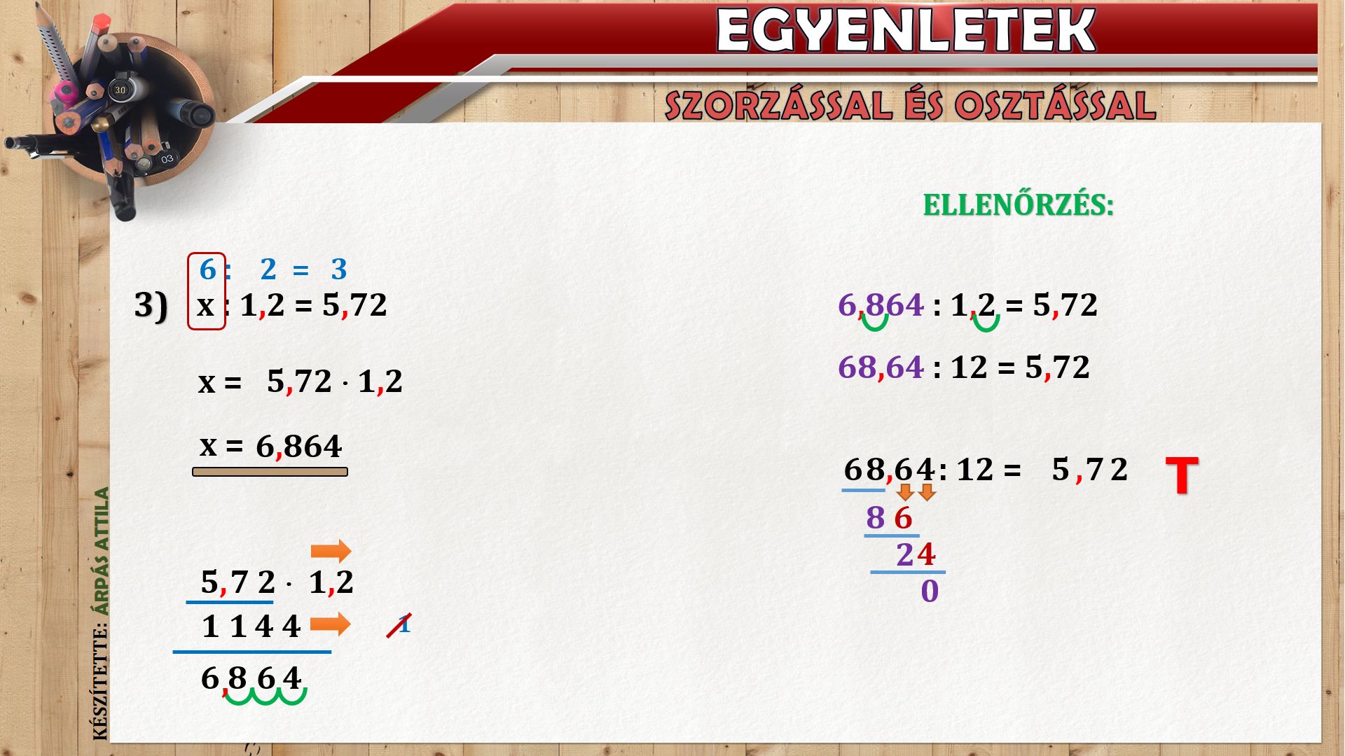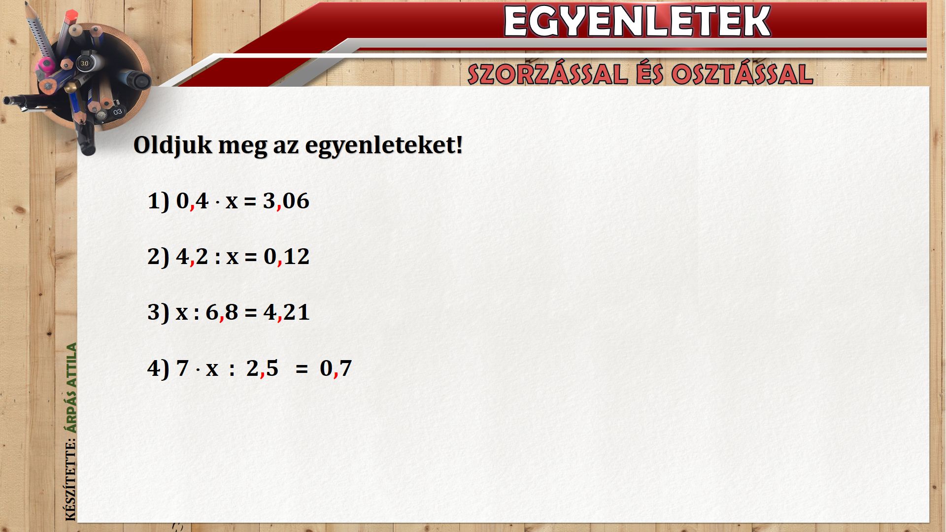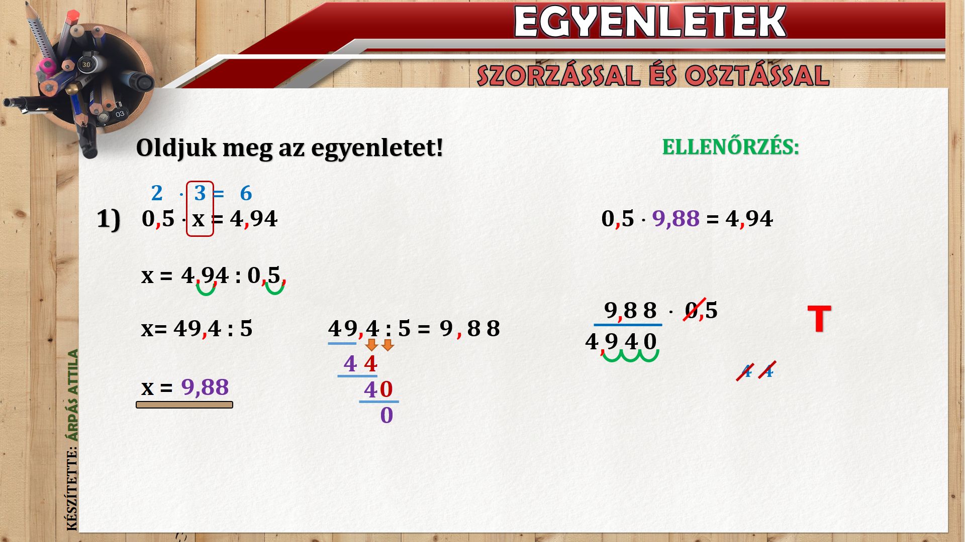 EGYENLETEK TIZEDES TÖRTEK SZORZÁSÁVAL ÉS OSZTÁSÁVAL KAPCSOLATBAN