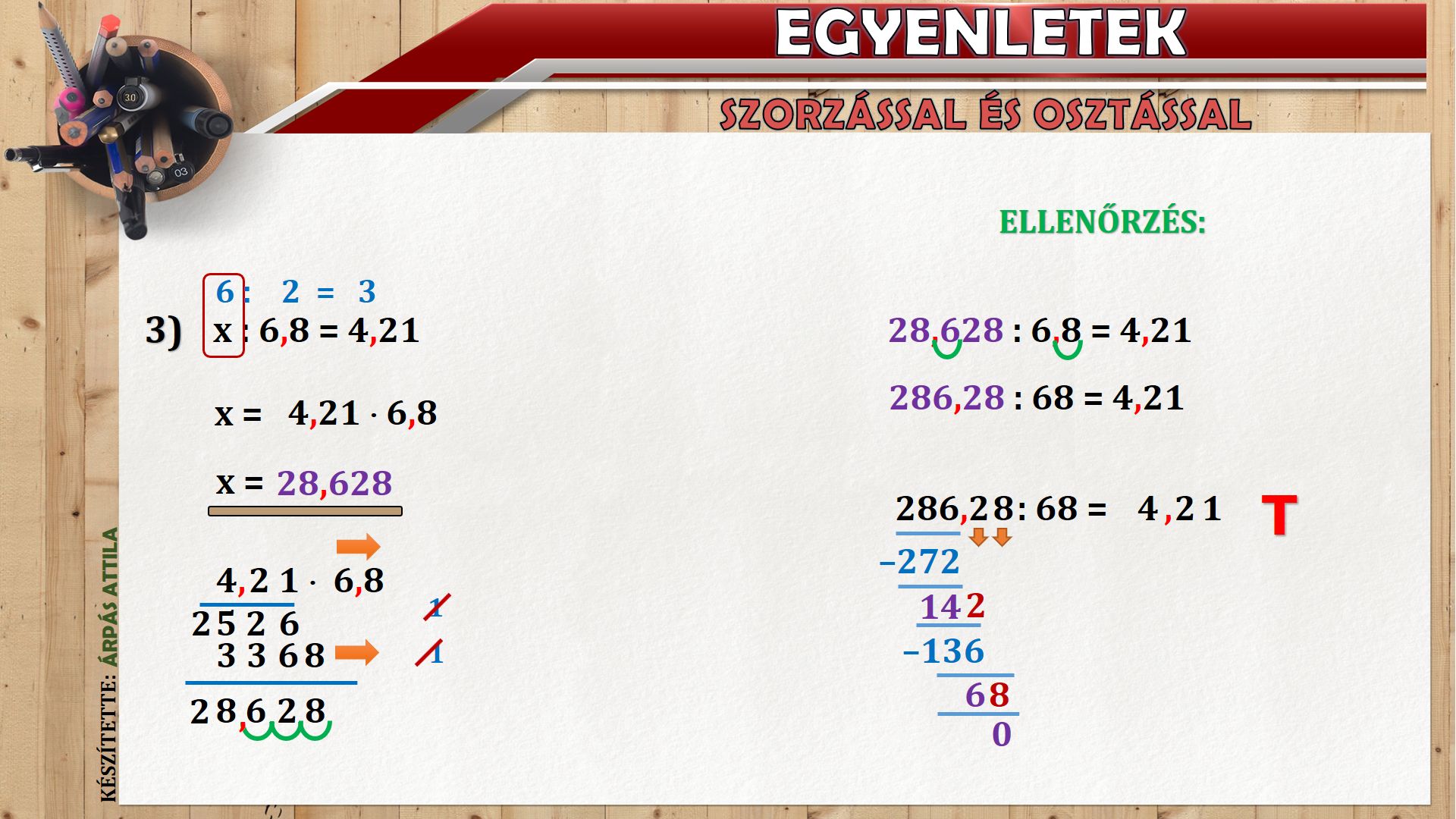 VIDEÓ MAGYARÁZAT - TIZEDES TÖRTEK SZORZÁSÁVAL ÉS OSZTÁSÁVAL KAPCSOLATOS EGYENLETEK