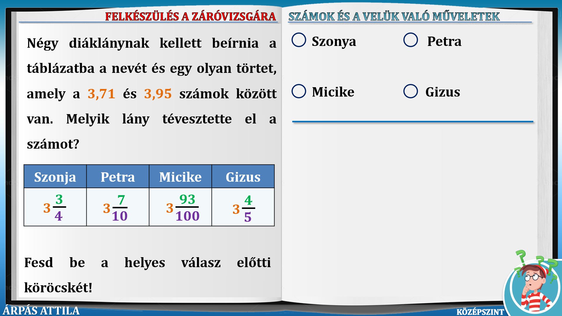 SZÁMOK ÉS VELÜK VALÓ MŰVELETEK (KÖZÉPSZINT, 168-197. ) TOVÁBBI LECKÉK SZÁMOK ÉS VELÜK VALÓ MŰVELETEK (2021 - KÖZÉPSZINT)-FELADATOK: 168-177. SZÁMOK ÉS VELÜK VALÓ MŰVELETEK (2021 - KÖZÉPSZINT)-FELADATOK: 178-187. SZÁMOK ÉS VELÜK VALÓ MŰVELETEK (2021 - KÖZÉPSZINT)-FELADATOK: 188-197. |
