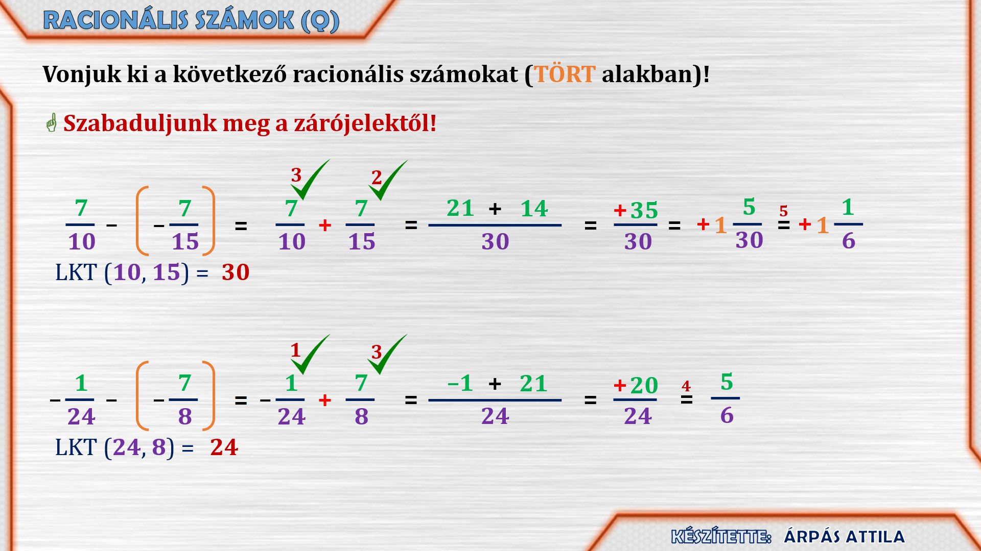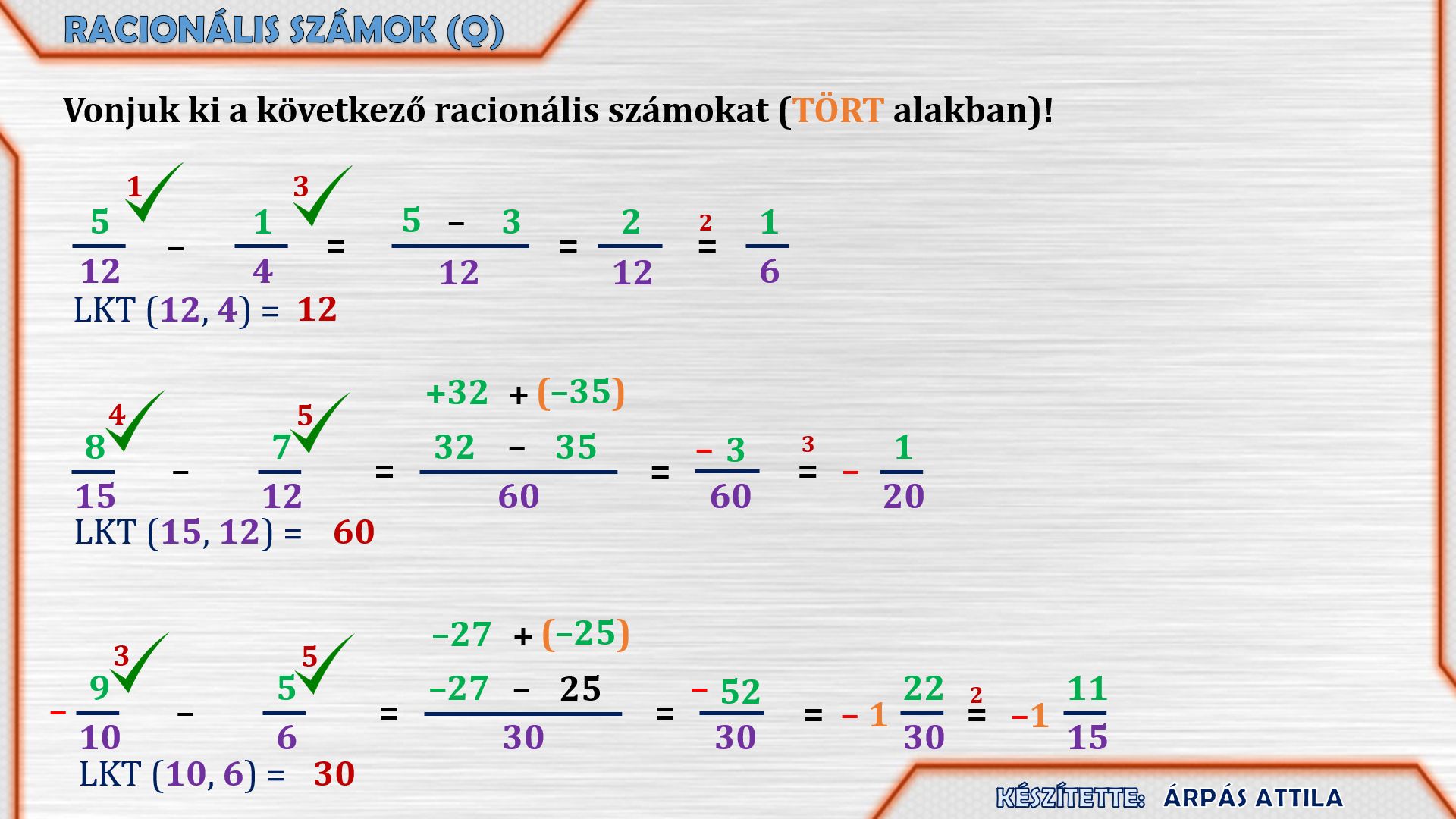 KÜLÖNBÖZŐ ALAKÚ RACIONÁLIS SZÁMOK ÖSSZEADÁSA / KIVONÁSA