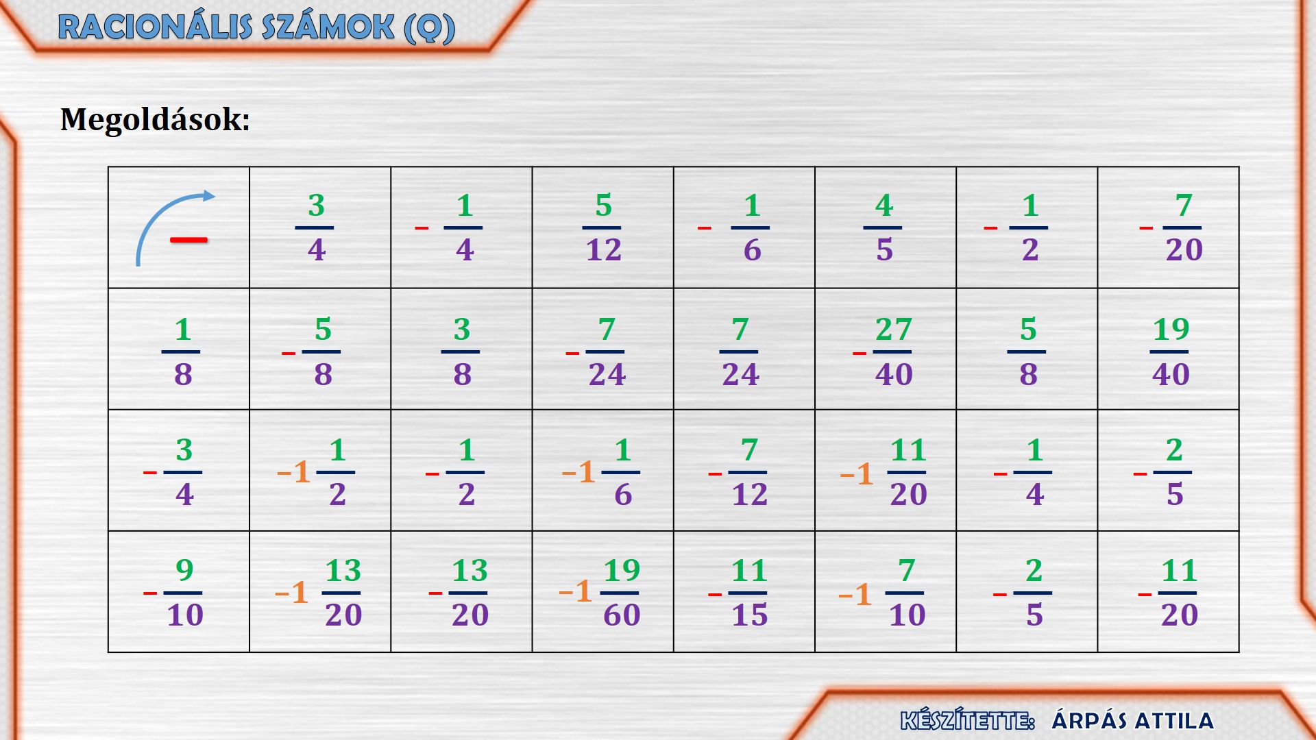RACIONÁLIS SZÁMOK ÖSSZEADÁSA ÉS KIVONÁSA - ÖSSZEGZÉS