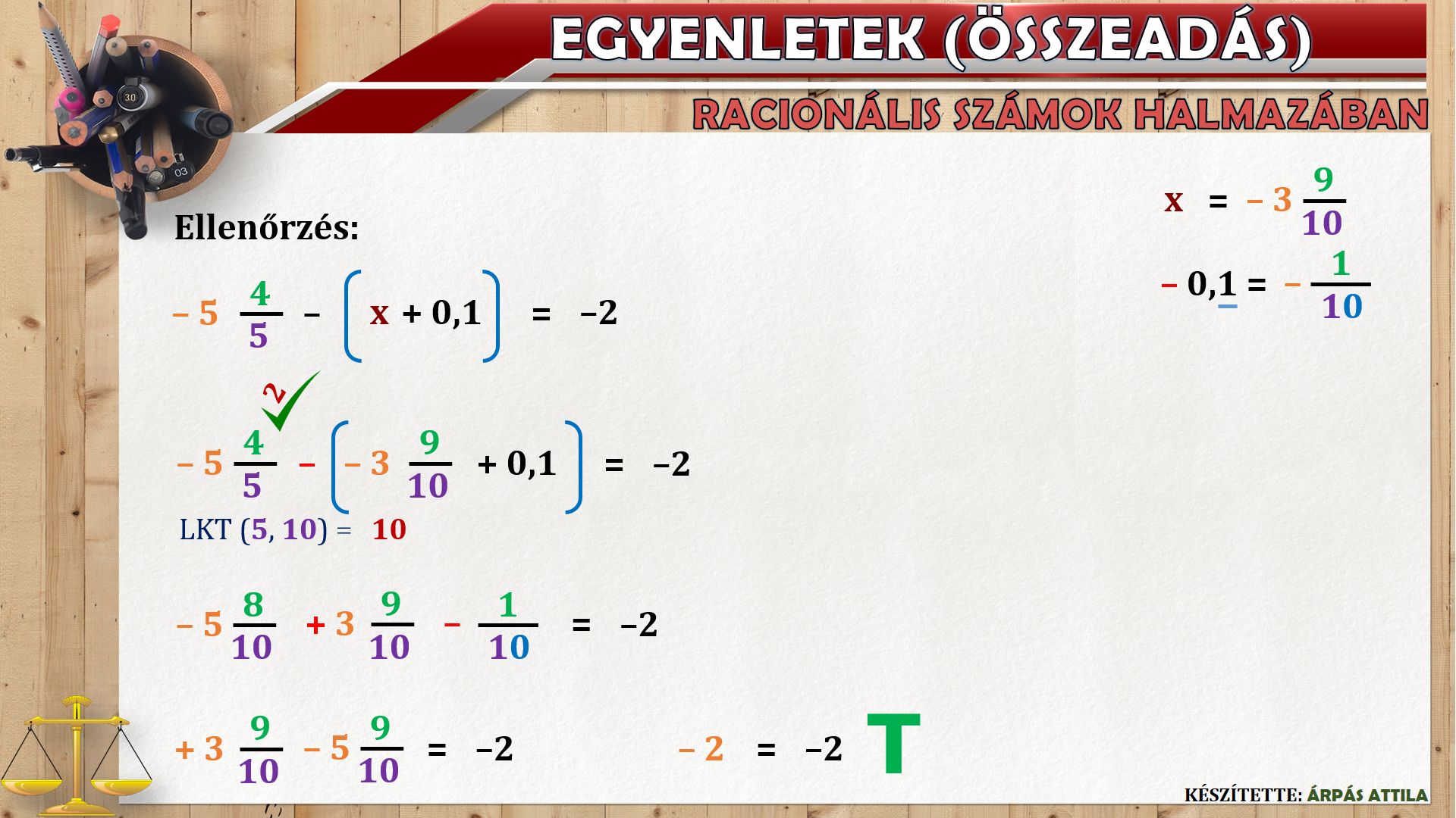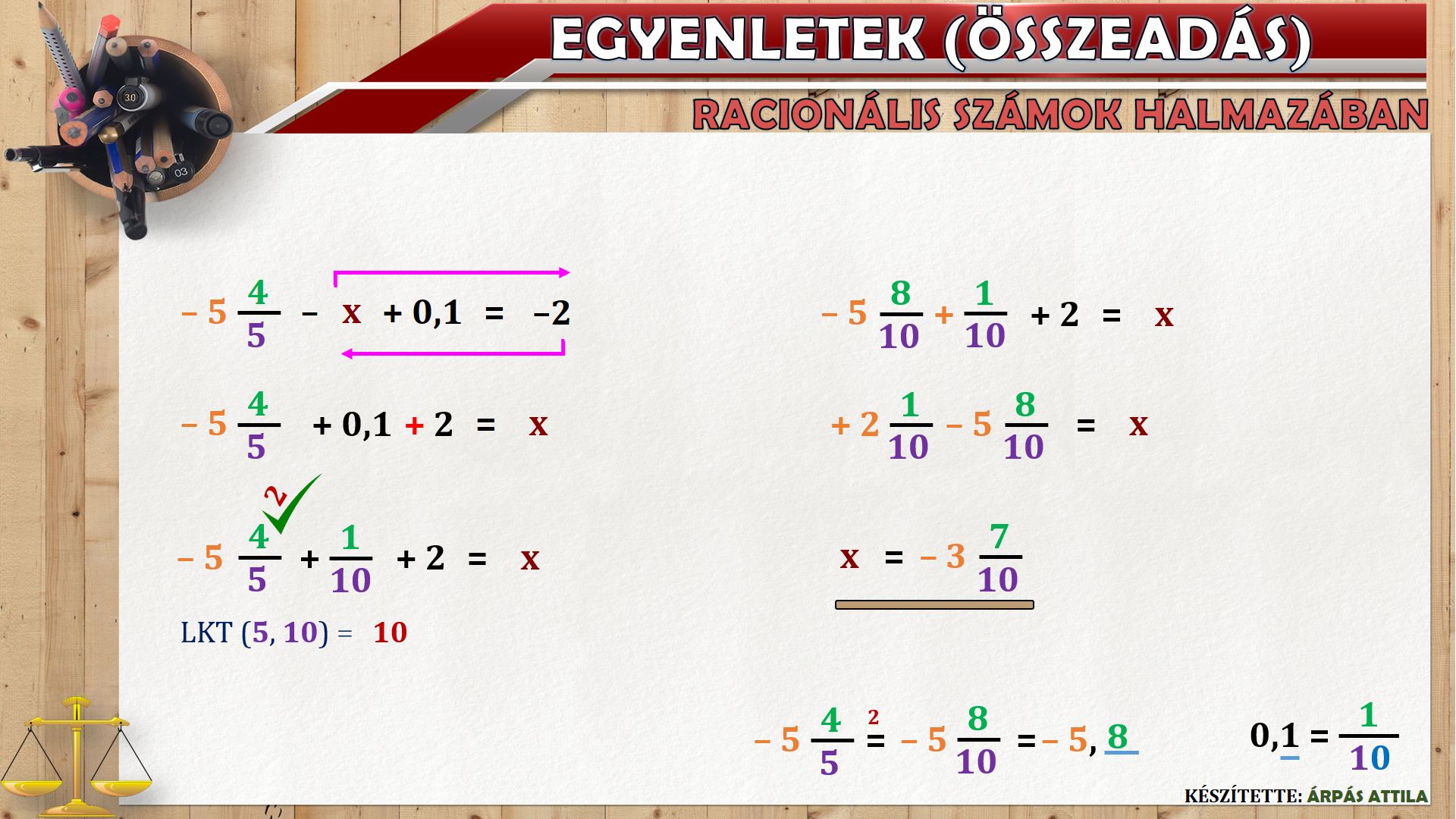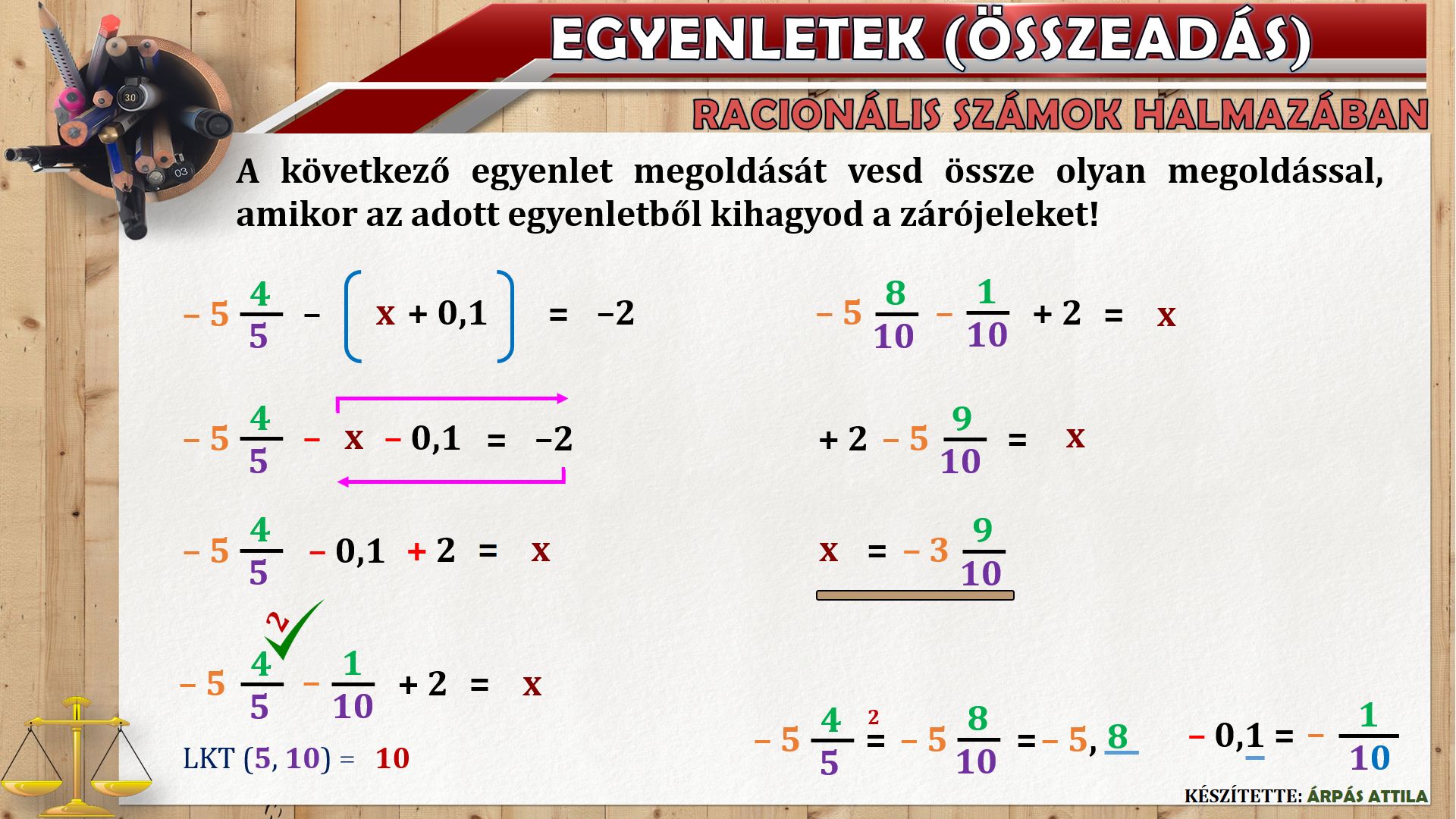 EGYENLETEK MEGOLDÁSA – 5. RÉSZ (ZÁRÓJELES FELADATOK, ÖSSZEADÁS ÉS KIVONÁS, RACIONÁLIS SZÁMOK HALMAZA, MÉRLEGELV) 1585
