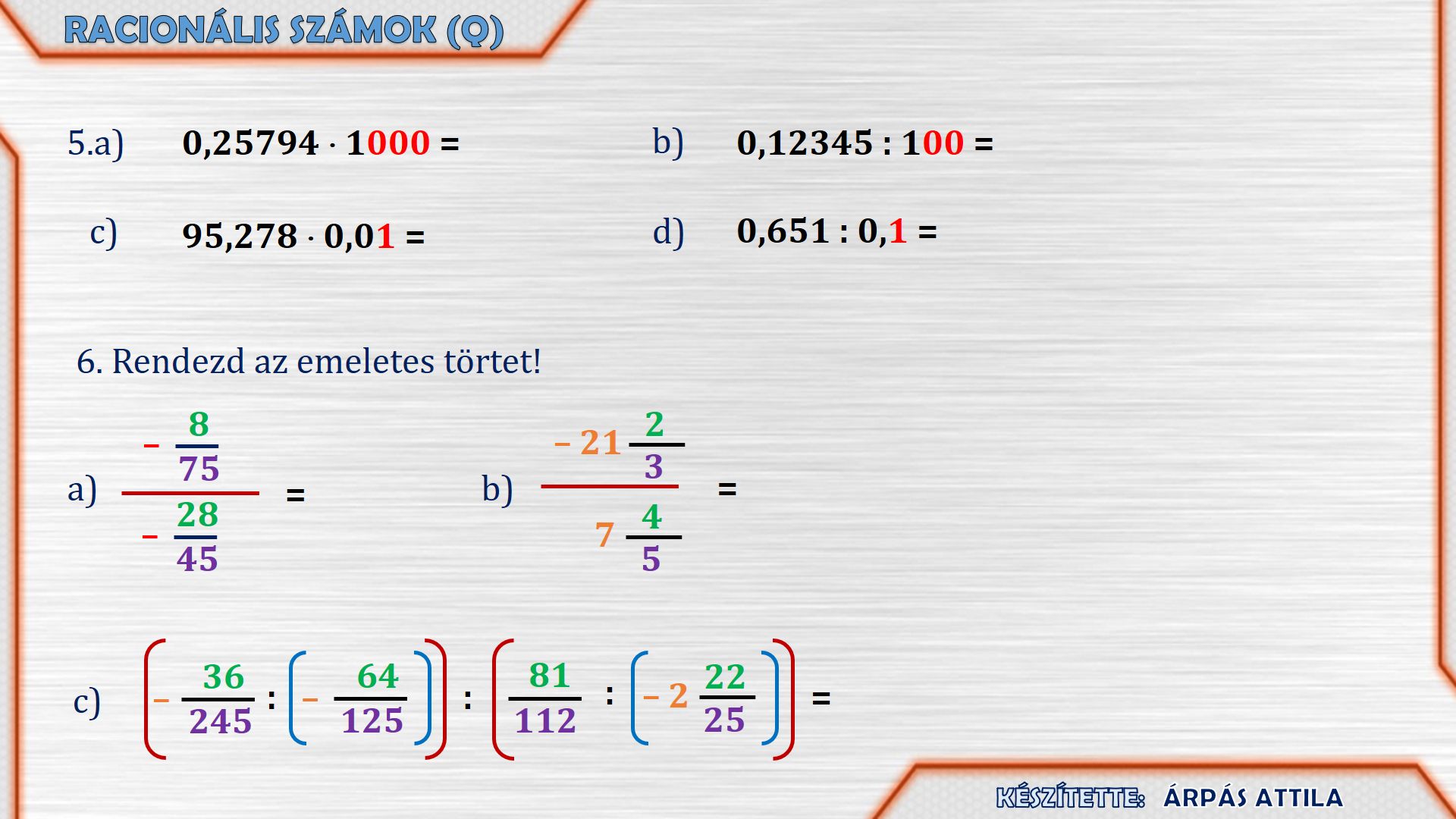 6) RACIONÁLIS SZÁMOK OSZTÁSA - EMELETES TÖRT