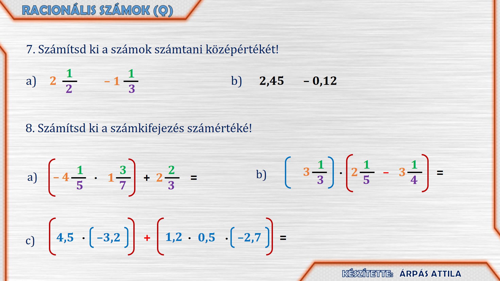 RACIONÁLIS SZÁMOK MŰVELETEK - 1. FELADATLAP