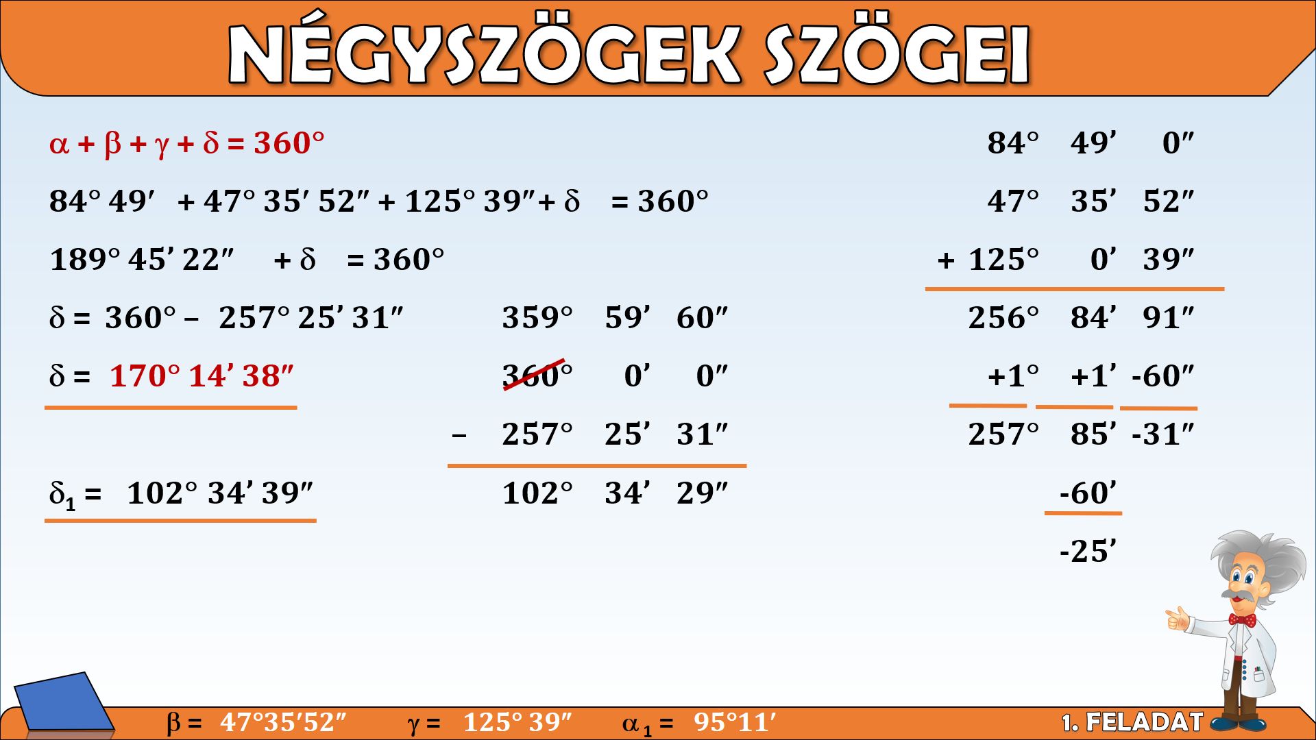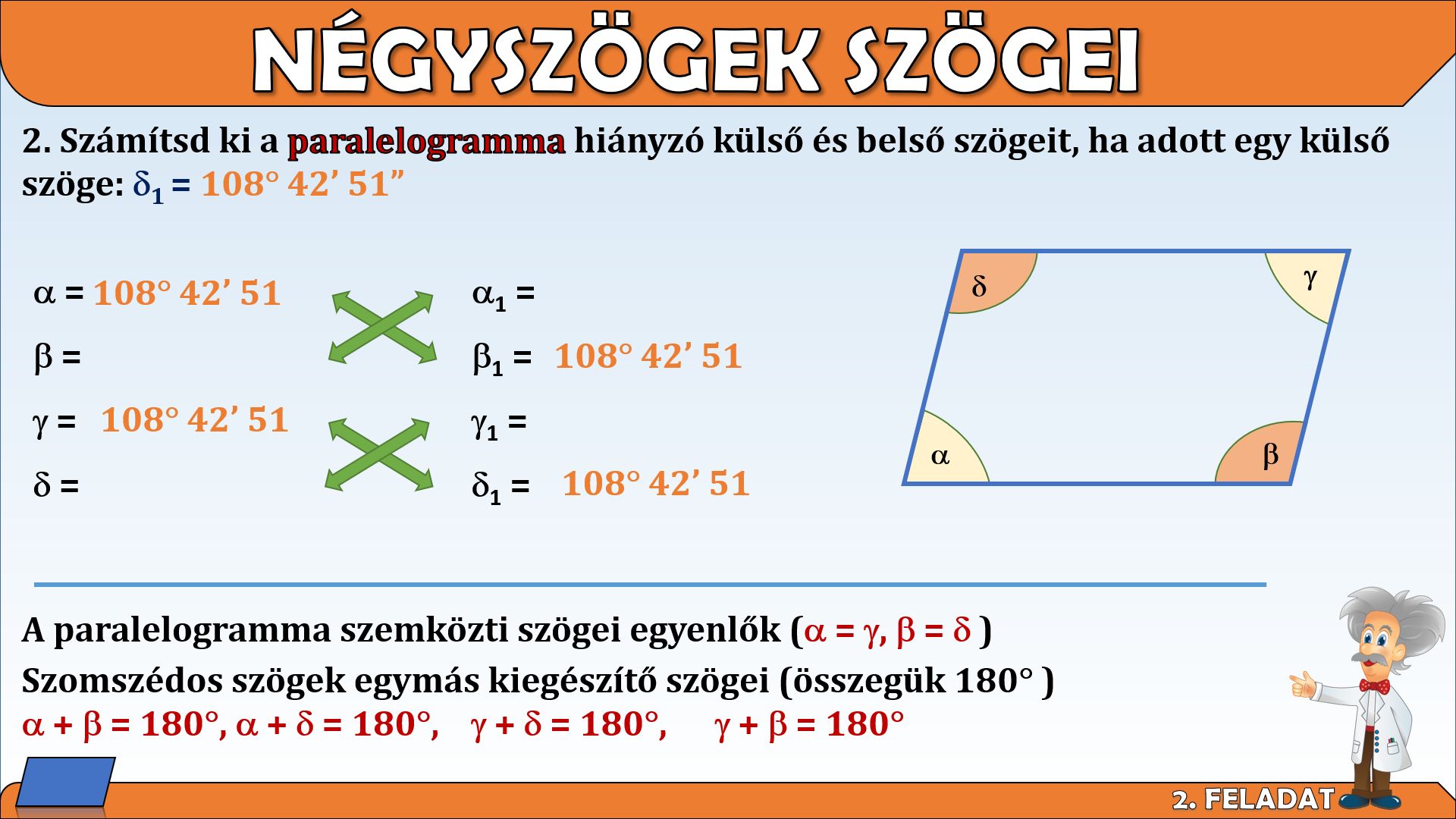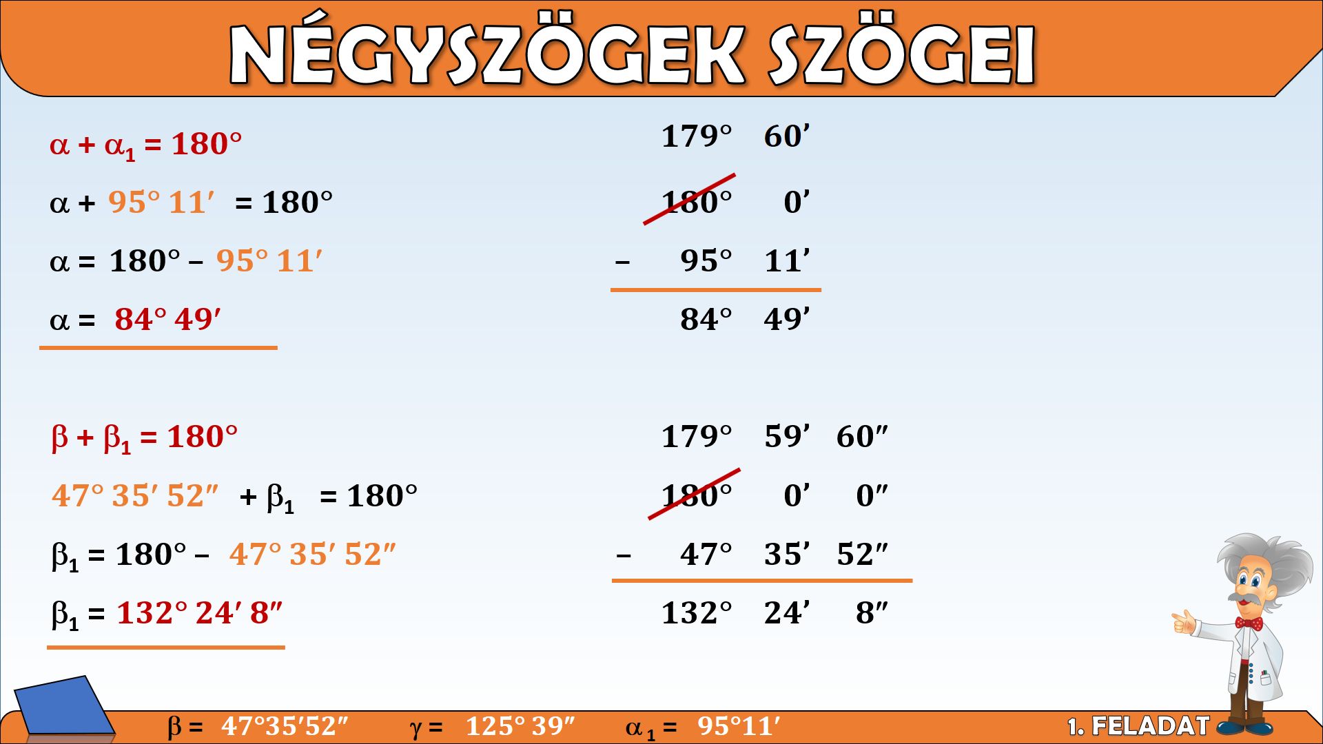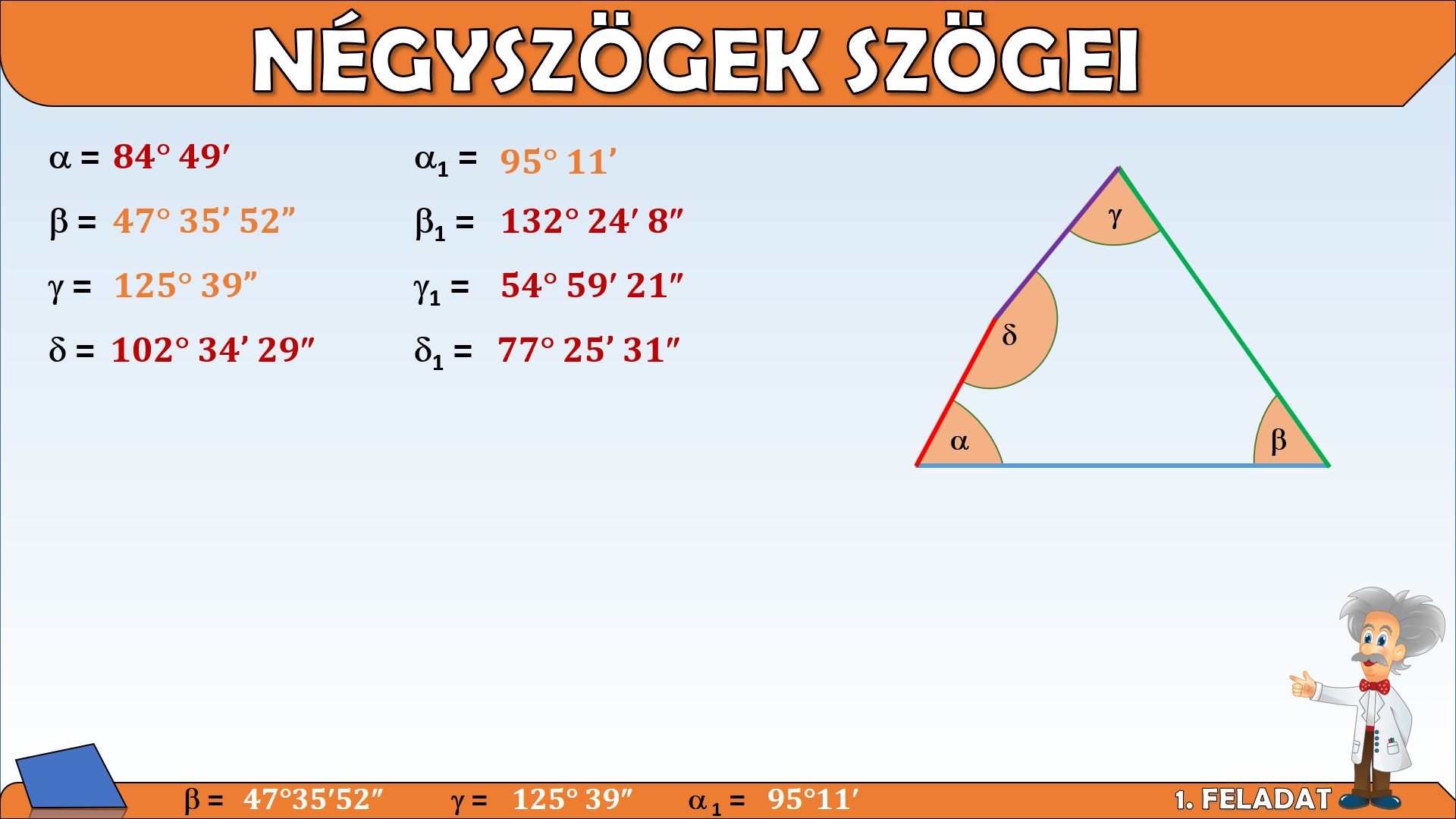 1) NÉGYSZÖGEK HIÁNYZÓ SZÖGEINEK KISZÁMÍTÁSA (ÁLTALÁNOS NÉGYSZÖG, PARALELOGRAMMA, EGYENLŐ SZÁRÚ TRAPÉZ)