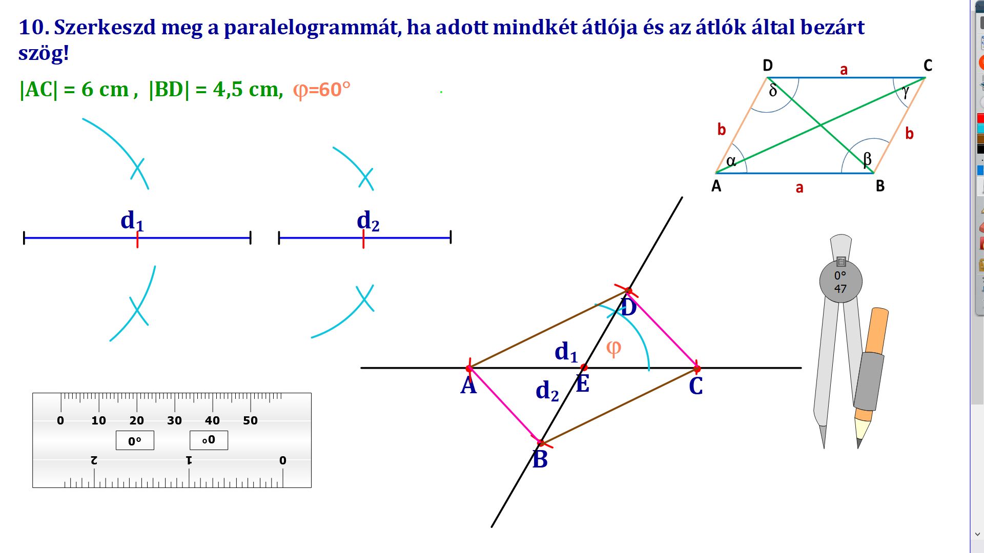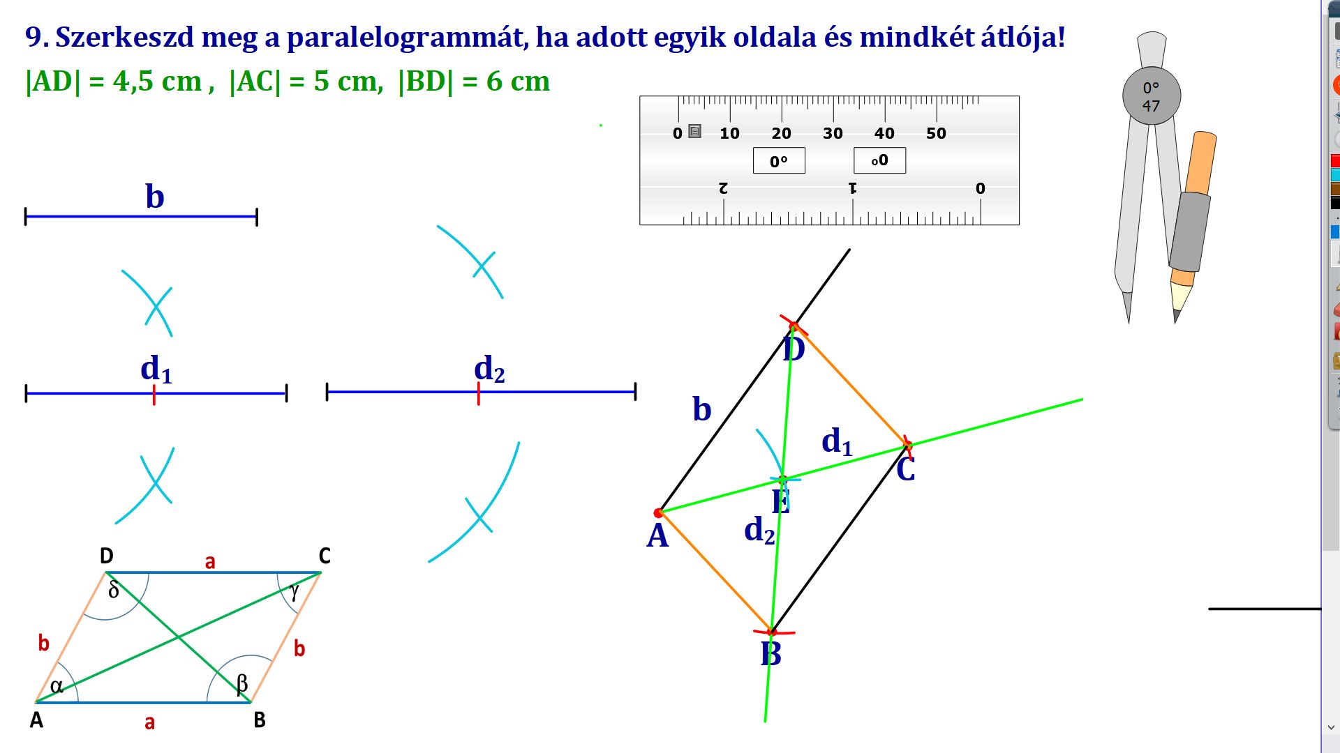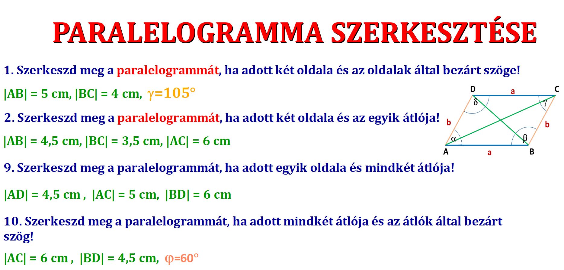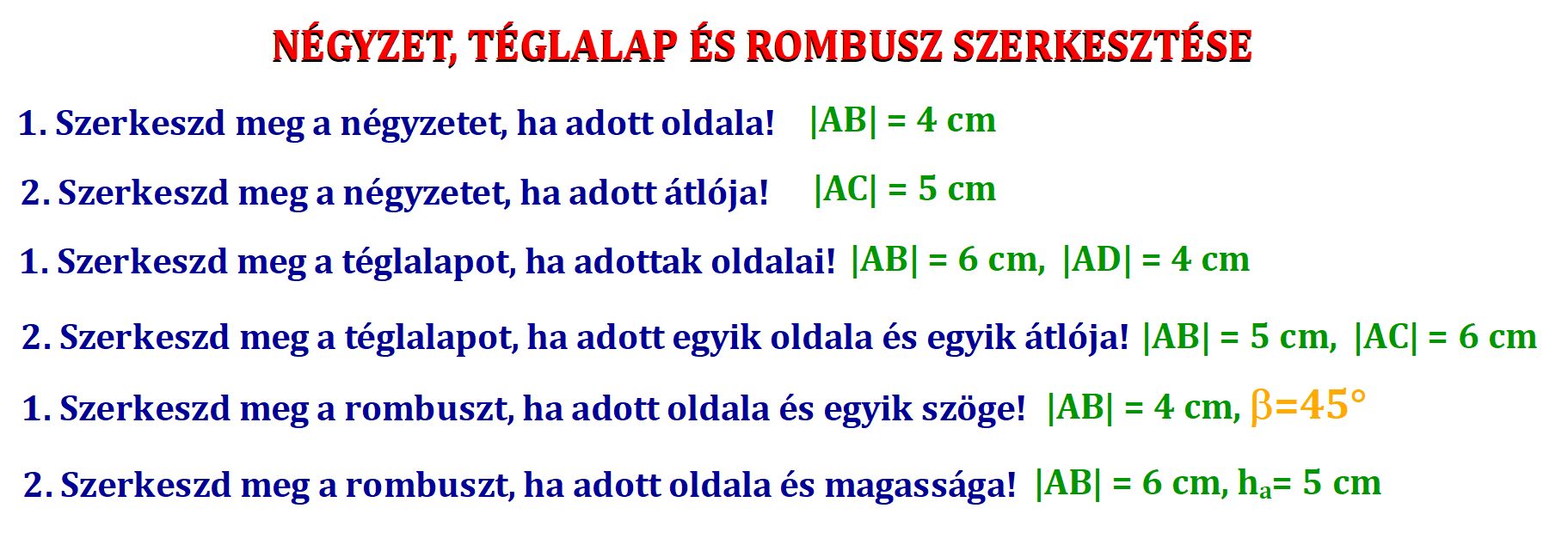 2) NÉGYSZÖGEK SZERKESZTÉSE (PARALELOGRAMMA, ROMBUSZ, NÉGYZET, TÉGLALAP)