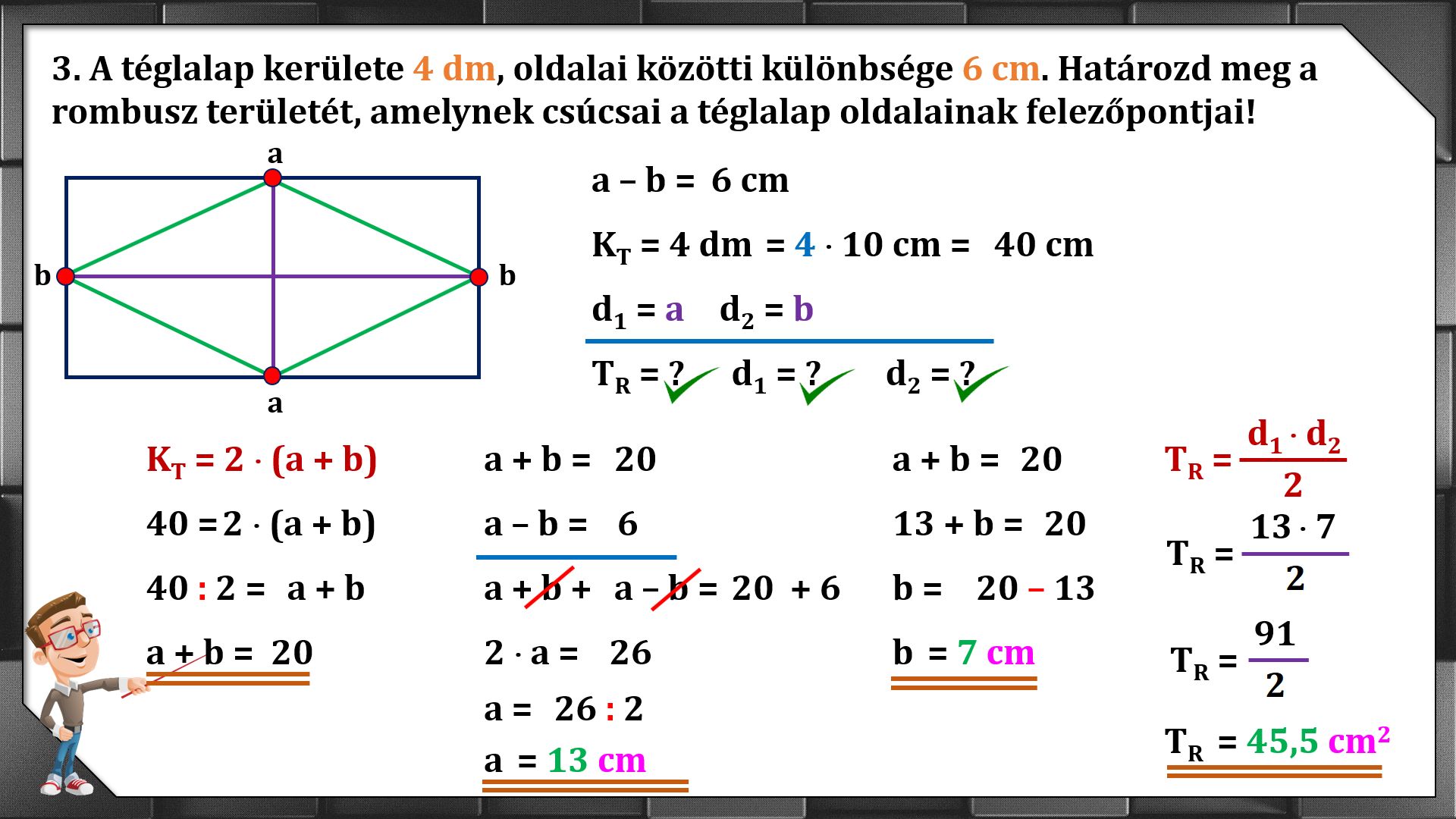 ROMBUSZ TERÜLETE ÉS KERÜLETE (KIDOLGOZOTT EGYEDI FELADATOK)