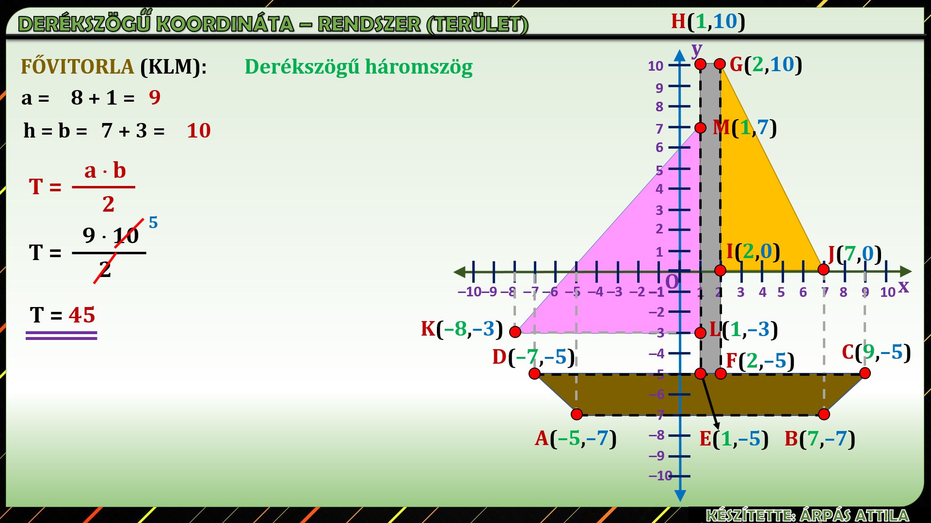 SÍKBELI ALAKZATOK TERÜLETE (KOORDINÁTA-REDSZER)