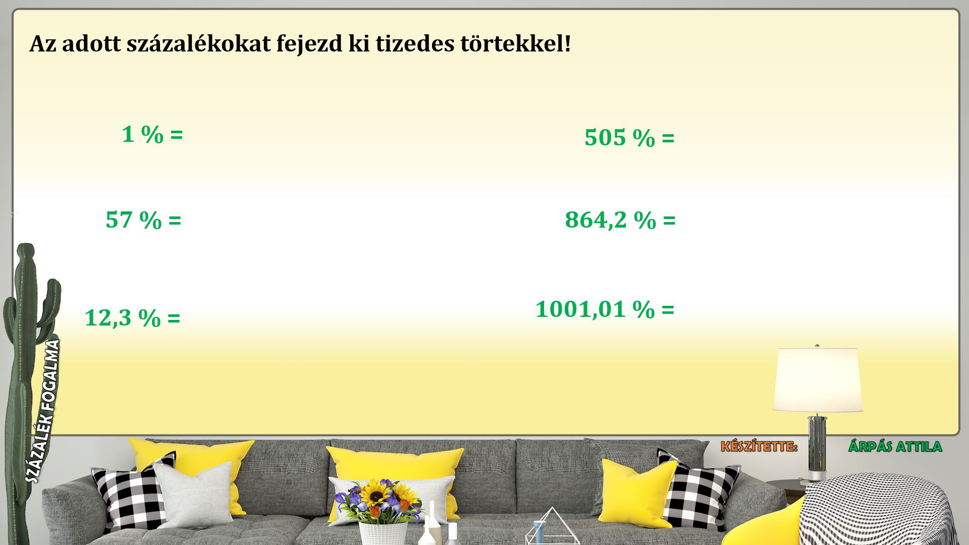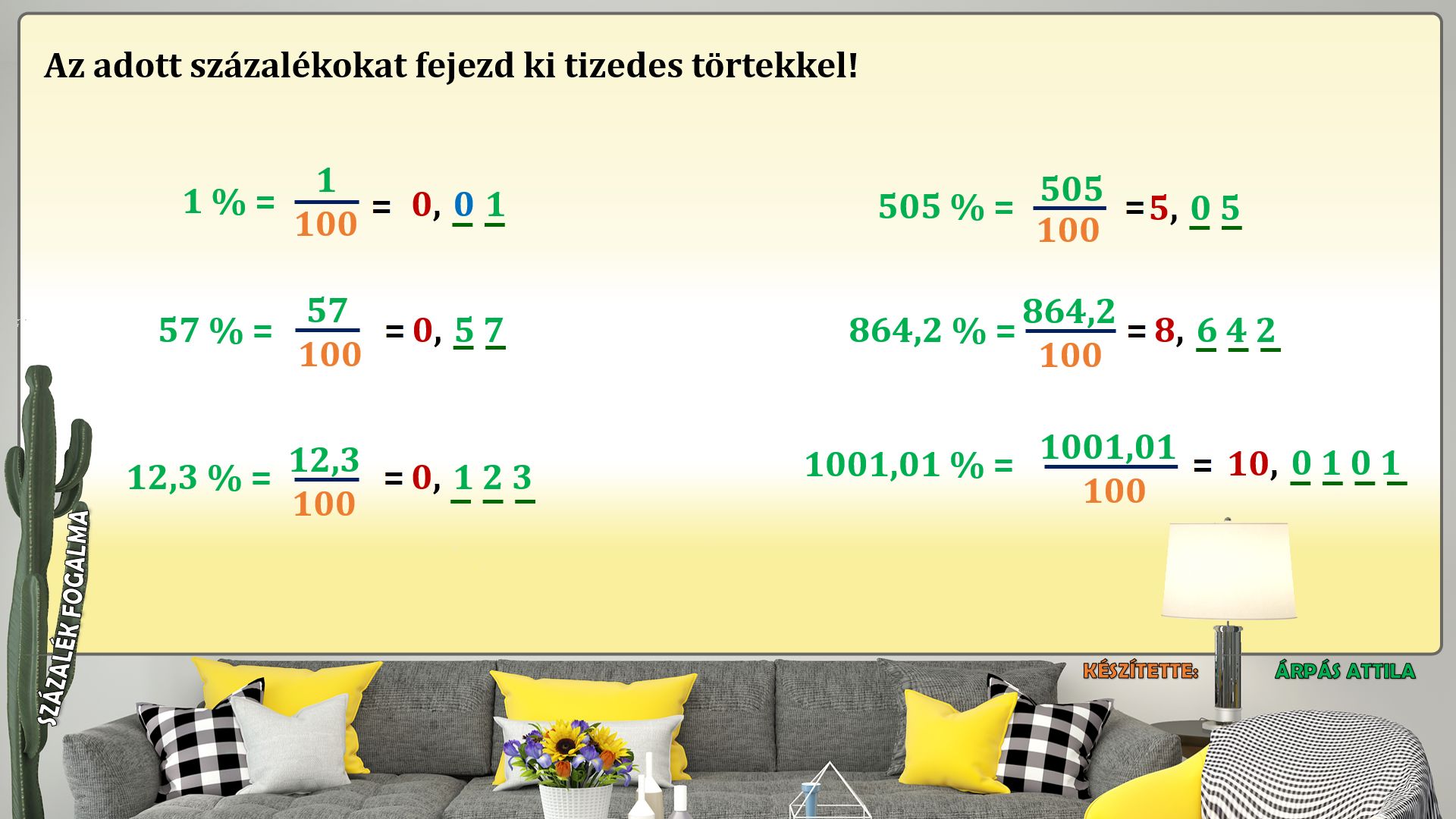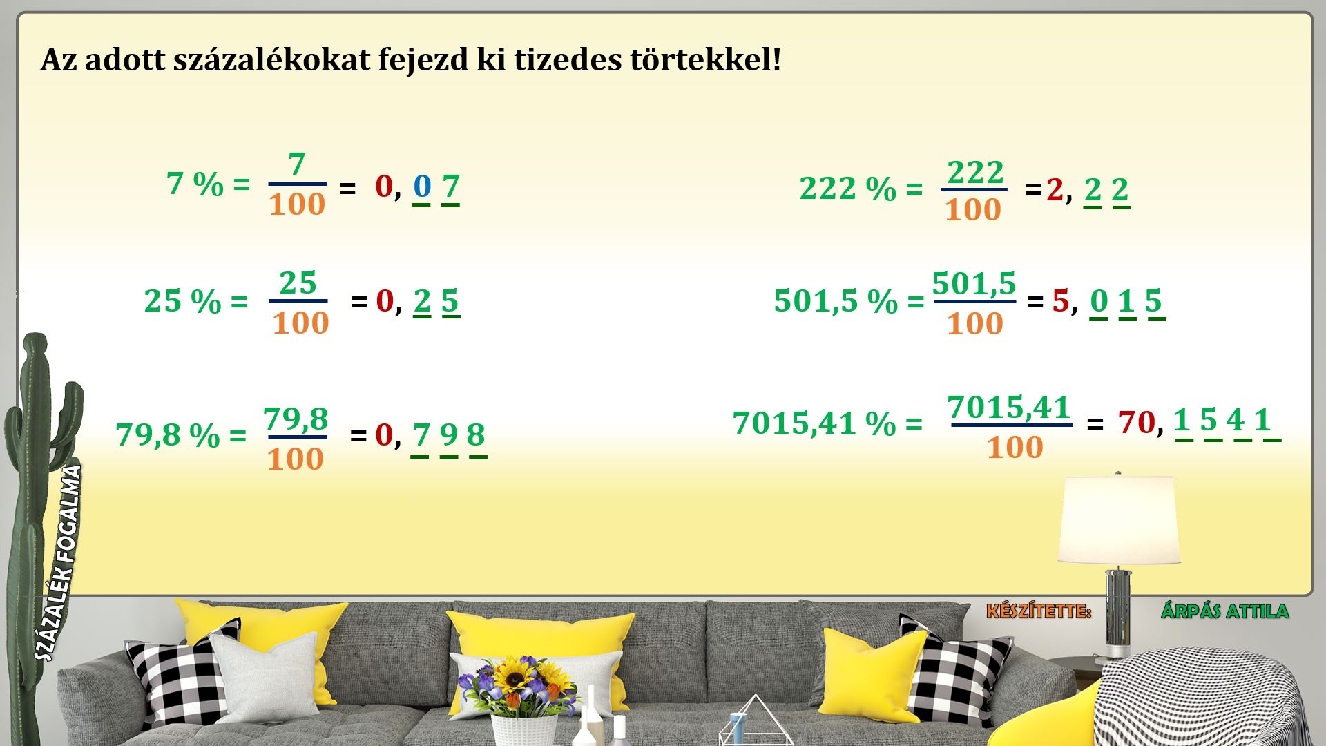 Ebben a leckében százalékot alakítunk át tizedes tört alakra.