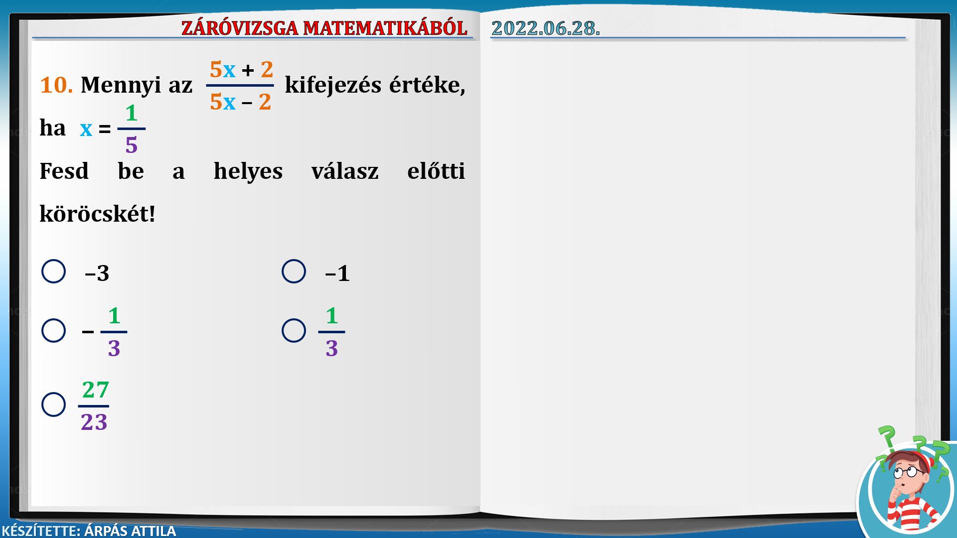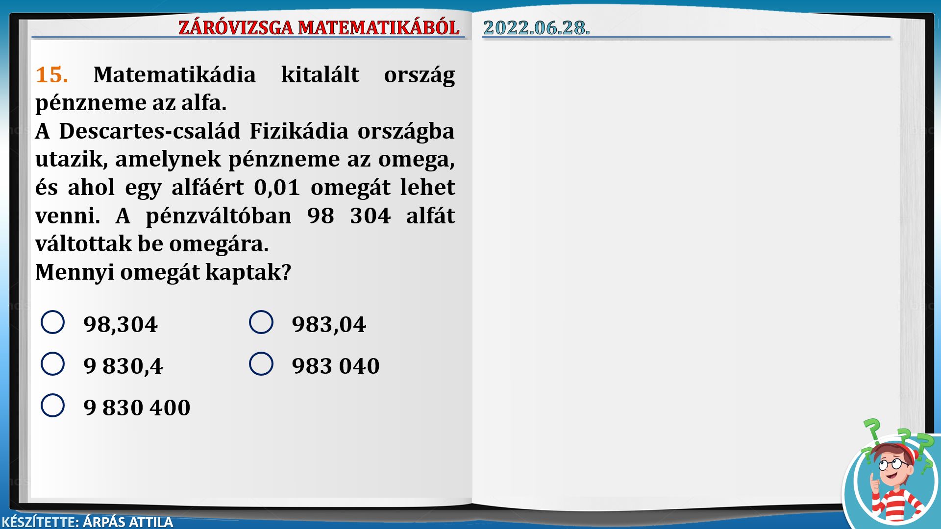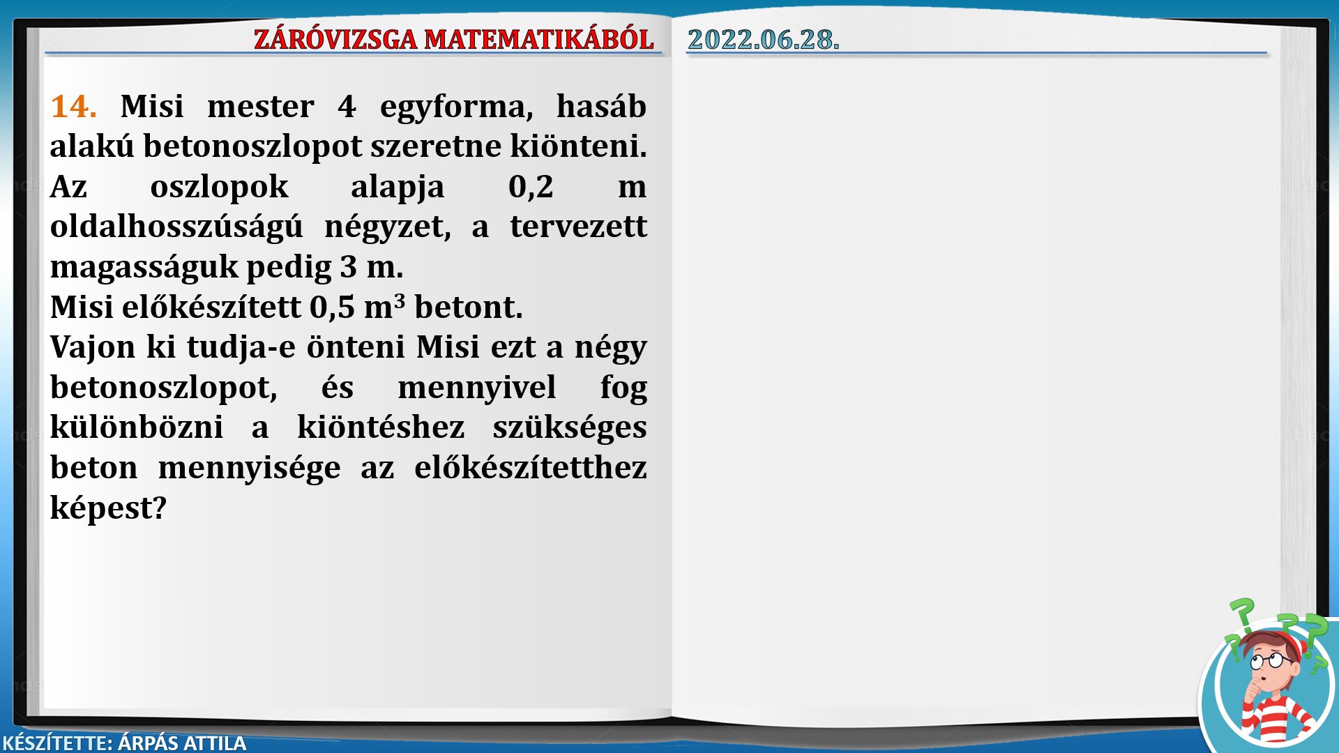 ZÁRÓVIZSGA MATEMATIKÁBÓL (2022.06.28.) – ALAPSZINT