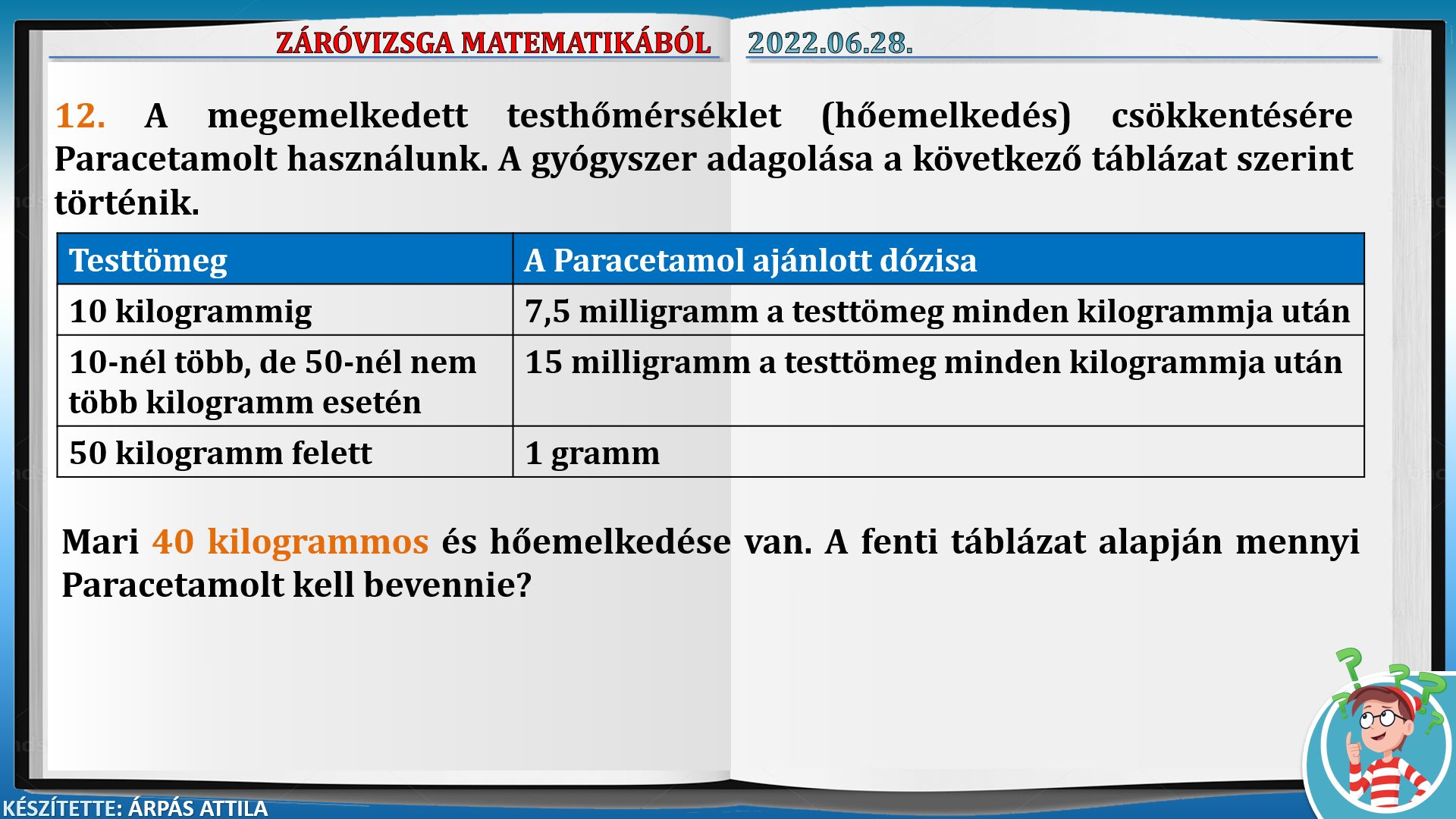 ZÁRÓVIZSGA MATEMATIKÁBÓL (2022.06.28.) – KÖZÉPSZINT