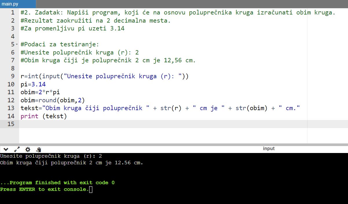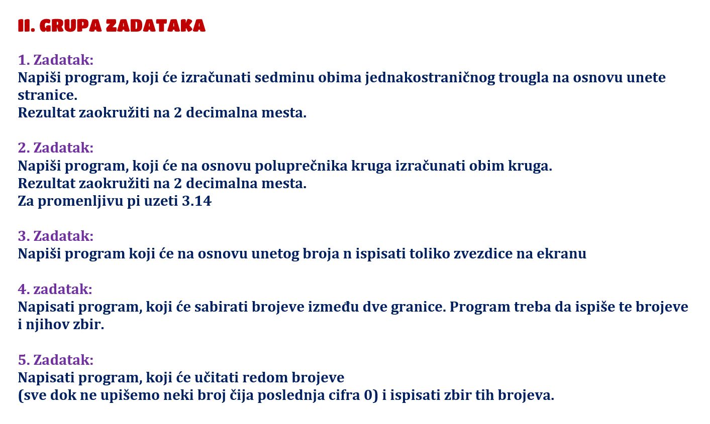 PYTHON PROGRAMIRANJE (II) – 2. GRUPA ZADATAKA (OSNOVNI NIVO)