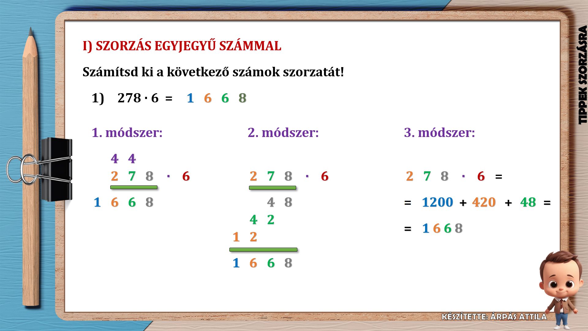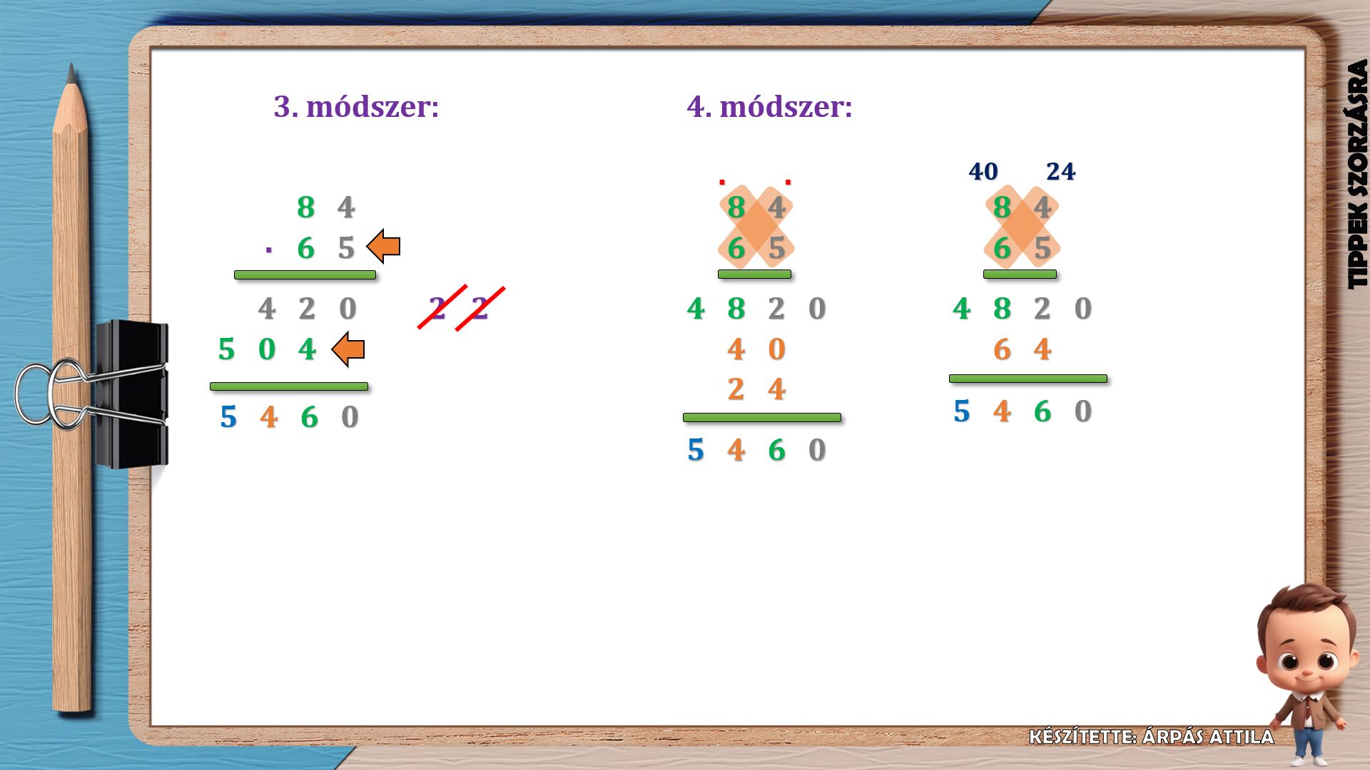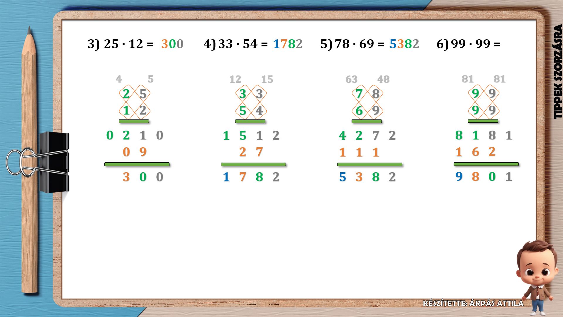 A folytatásban kétjegyű számokat szorzunk össze 4 módszert alkalmazva.