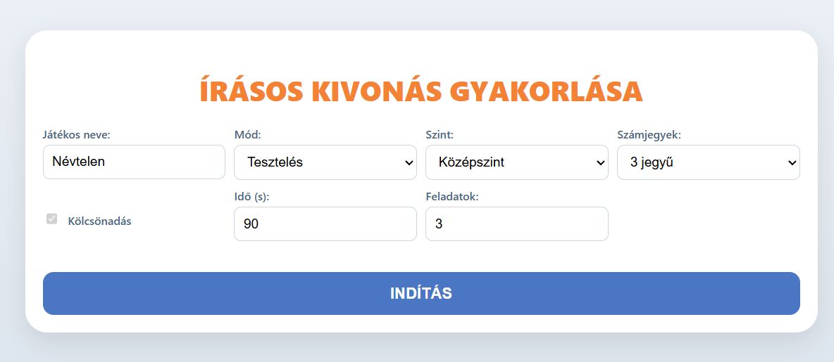 Ez az alkalmazás azért készült, hogy segítse az írásbeli kivonás elsajátítását (is), miközben próbára teszi a gyorsaságot és a pontosságot.
